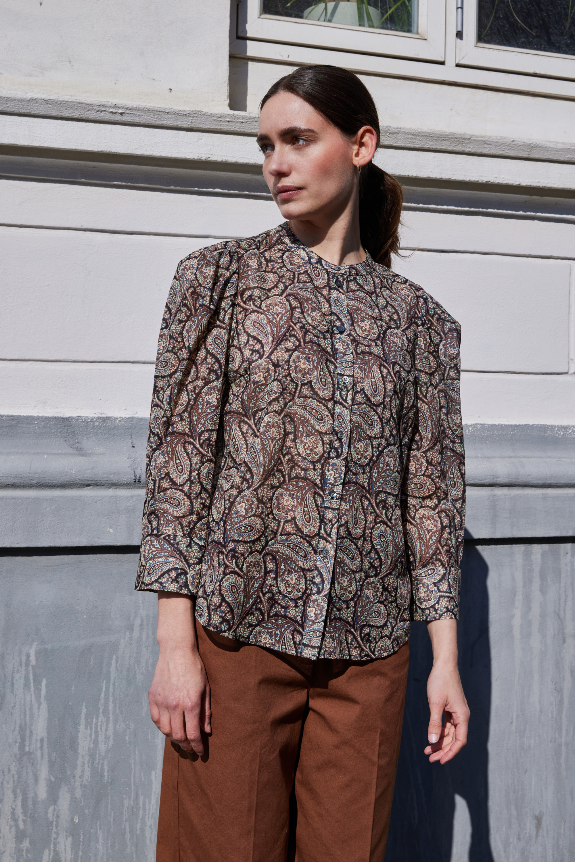 427HMTeras skjorte er en klassisk skjorte med et moderne paisleyprint. Designet har en afrundet krave, smalle manchetter og et let, feminint fald.