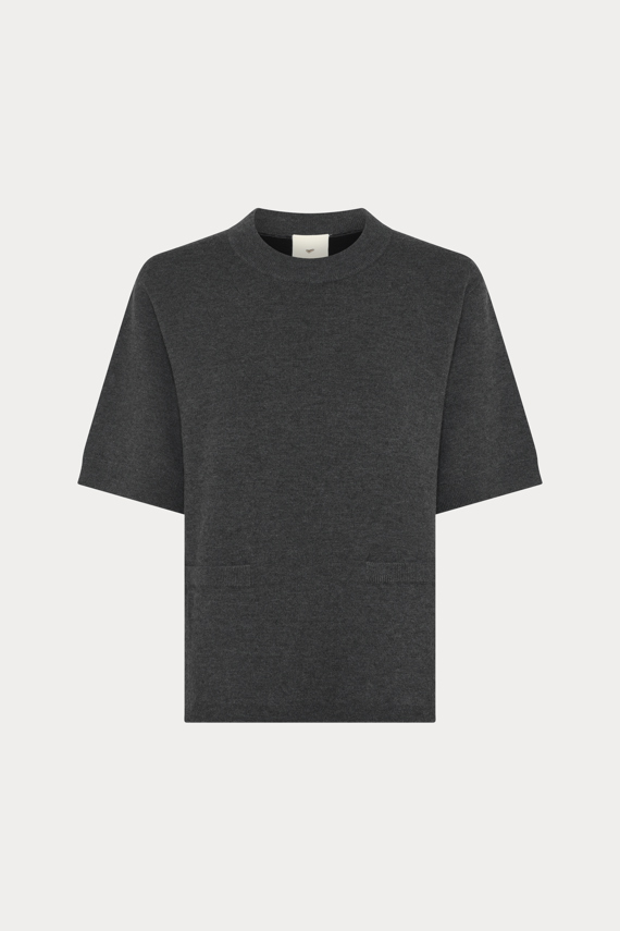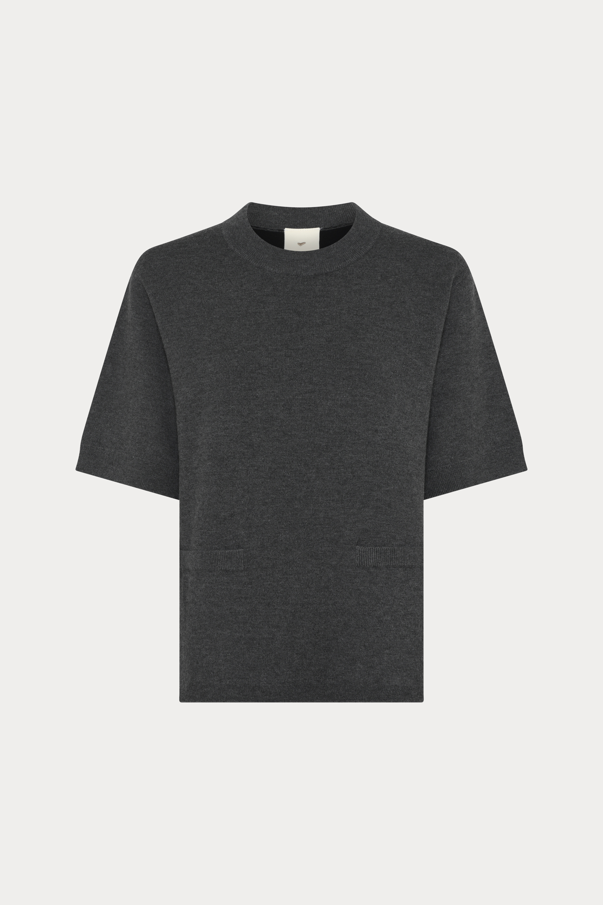 500HMKemer strik er en kortærmet, struktureret pullover med rund hals og en ren, skulpturel silhuet. Et moderne basisstykke i blød, tæt strik.
