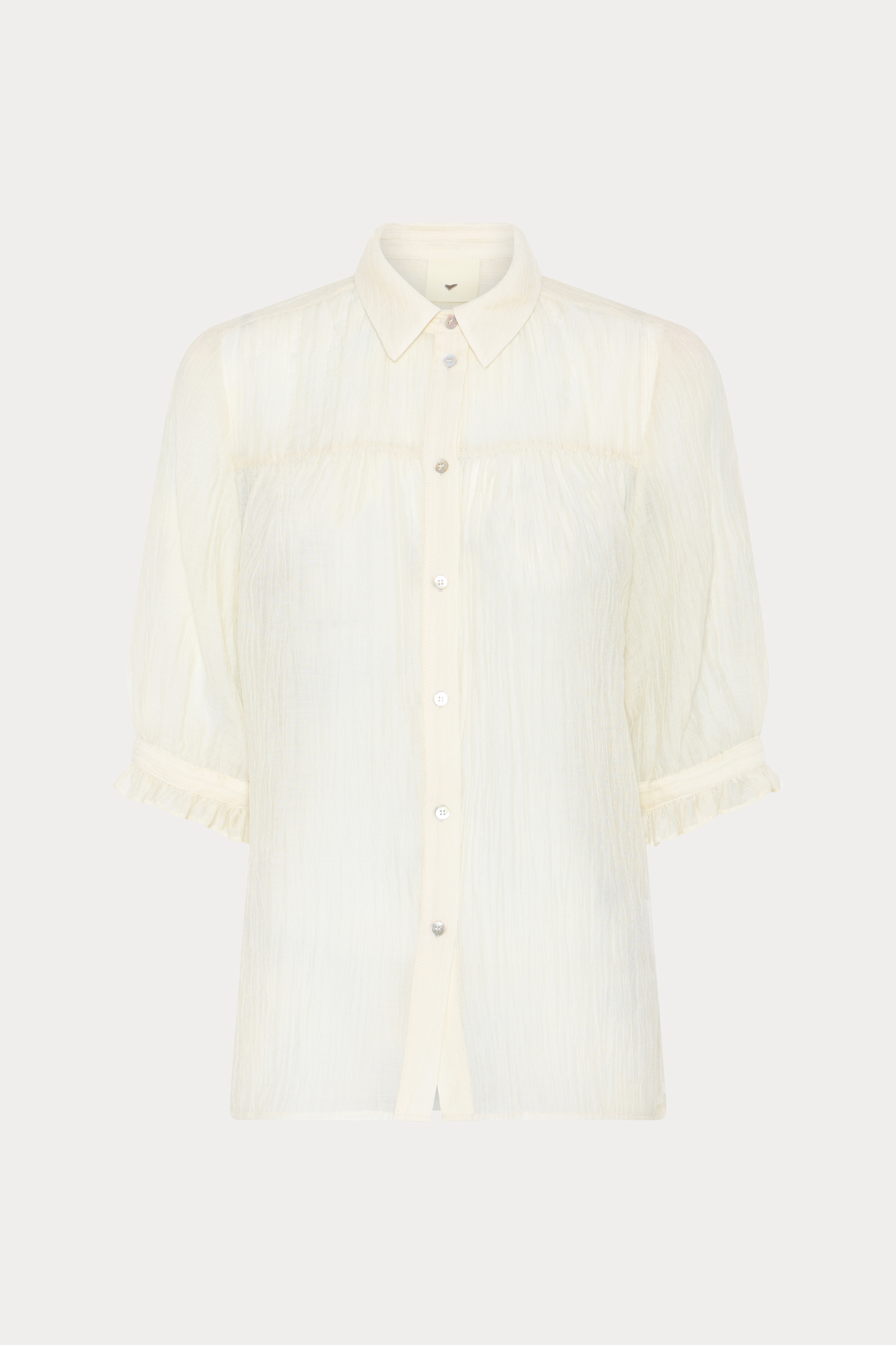 506HMTelser skjorte er en let, gennemsigtig skjorte med korte ærmer og fine flæsedetaljer. Det luftige stof skaber et feminint og ubesværet udtryk.
