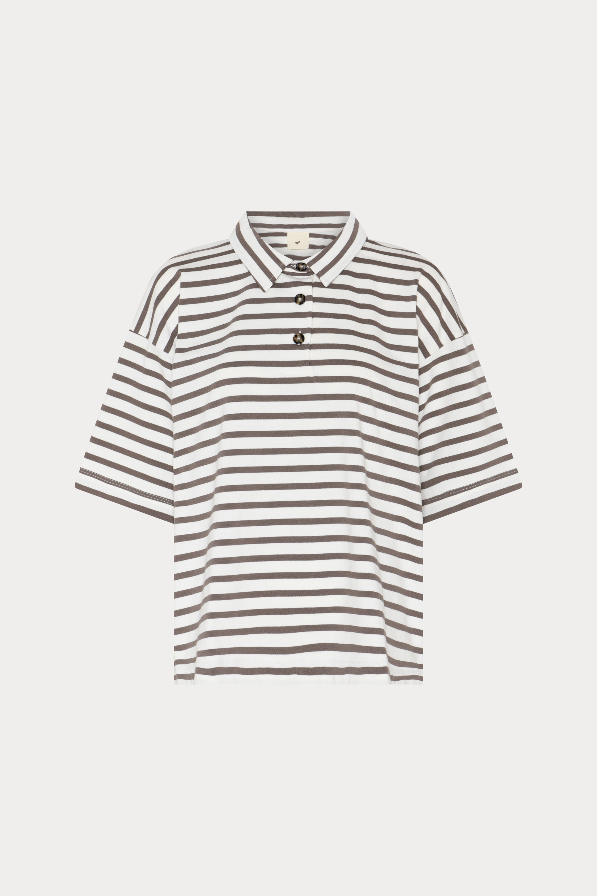 Erun T-shirt er en klassisk poloshirt med korte ærmer og en afslappet, boxy pasform. Designet med sænkede skuldre og slidser i siderne for et moderne touch.