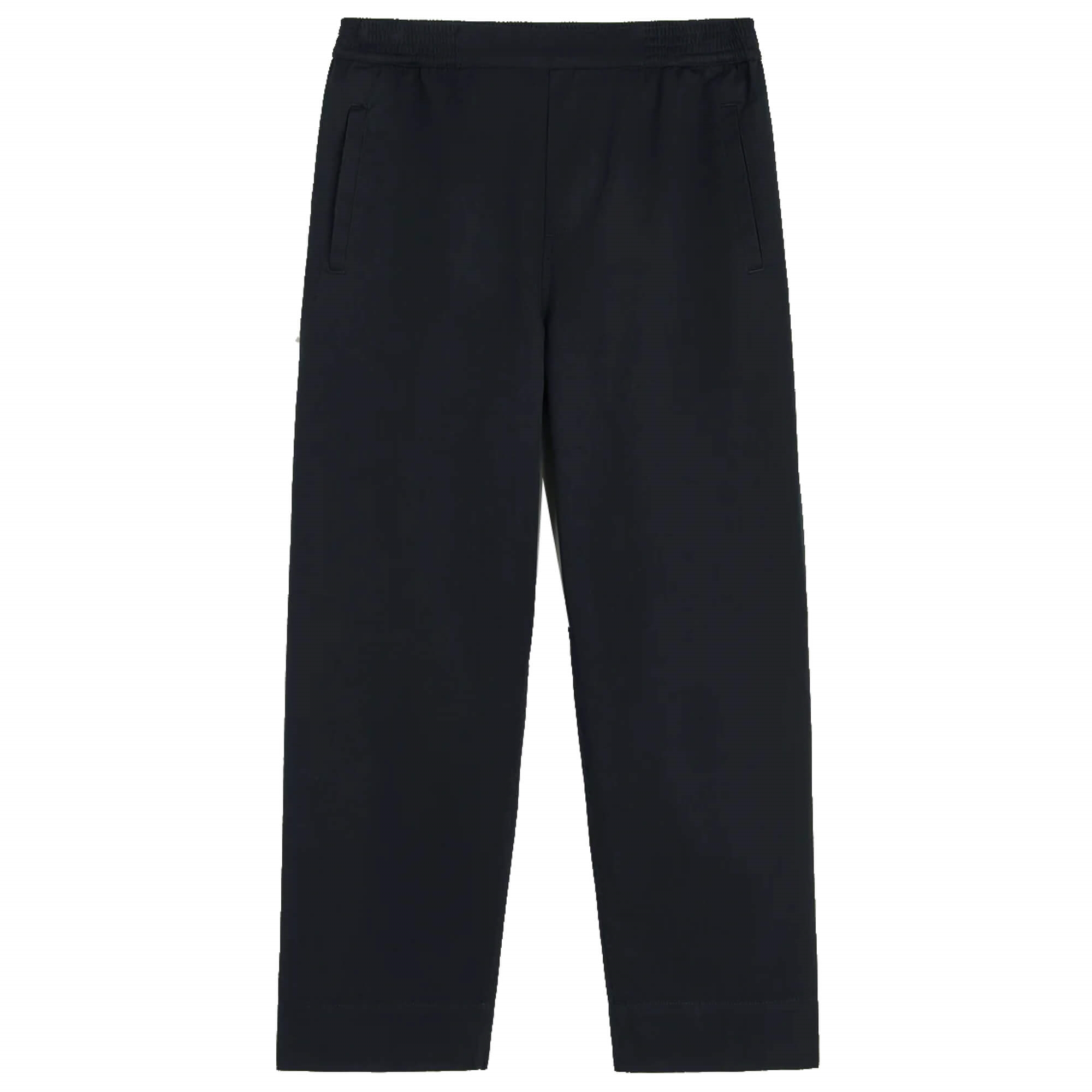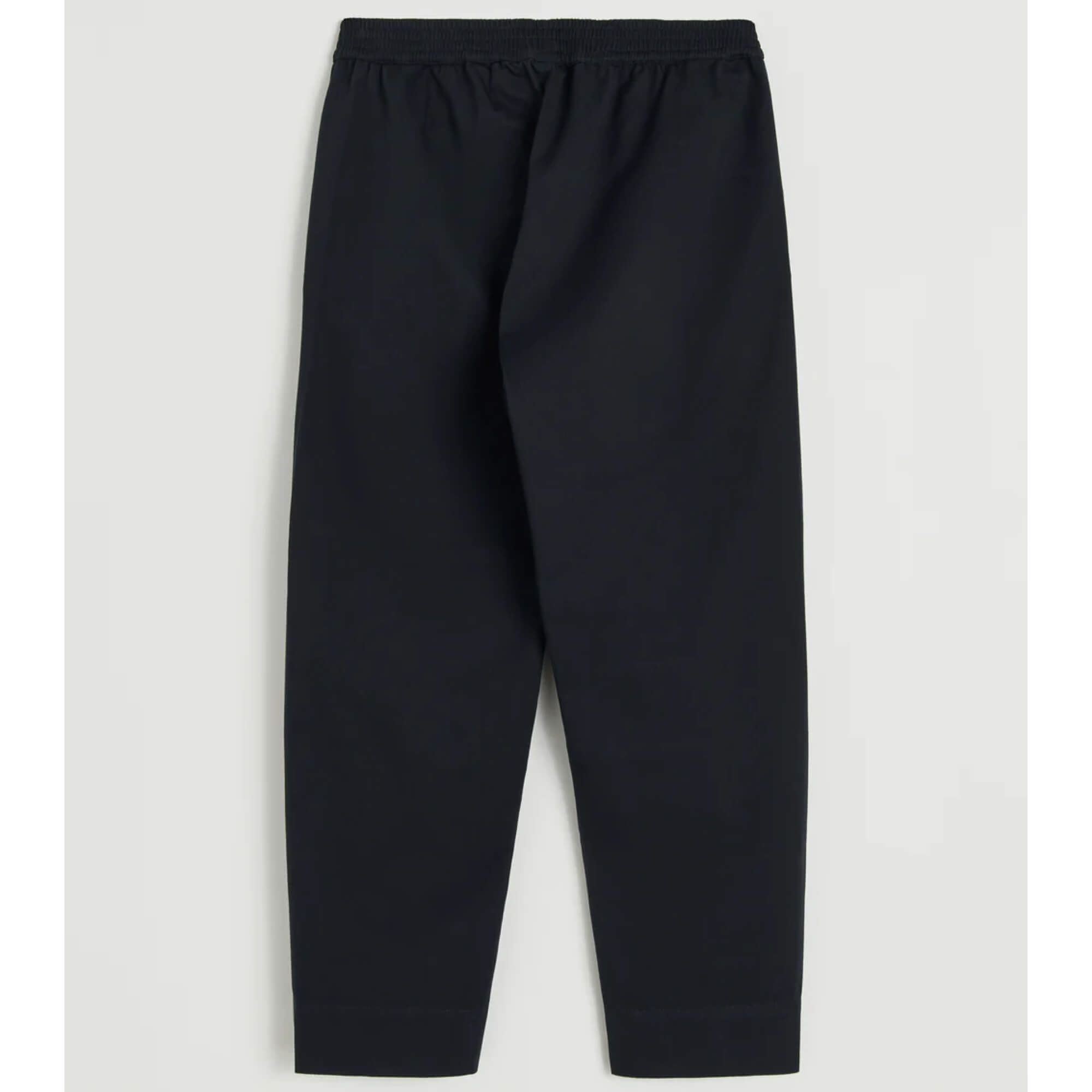 Coco Twill Bukser i Black Navy er et par tidløse bukser fremstillet i økologisk bomulds-twill. Designet i en afslappet og moderne silhuet med bred elastikkant i taljen, indvendige sømme, praktiske sidelommer, snydelynlås og let cropped benlængde, der giver et komfortabel og klassisk udtryk.