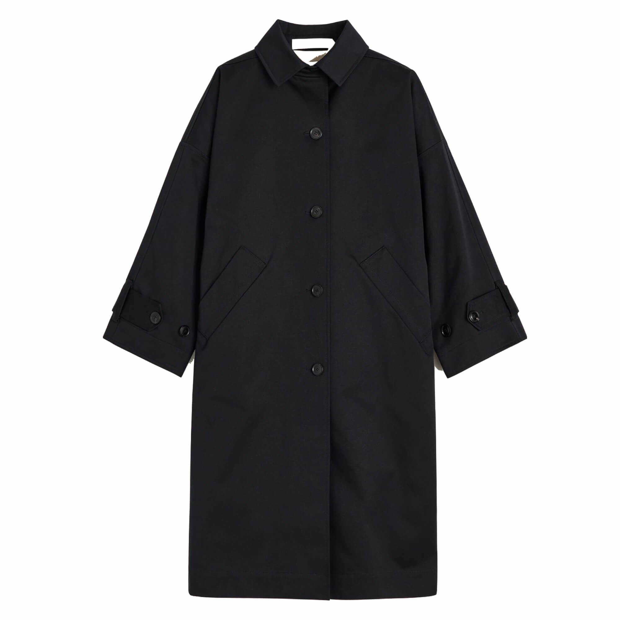 Denne elegante Jo Twill frakke fra Aiayu findes i en kraftig, økologisk bomuldstwill. Frakken har en oversized pasform med skræddersyet finish og en workwear-inspireret silhuet. Designet fuldendes af en diskret krave med knaplukning, sænkede skuldre, paspolerede lommer samt justerbare stropper ved ærmerne for et funktionelt og moderne udtryk.