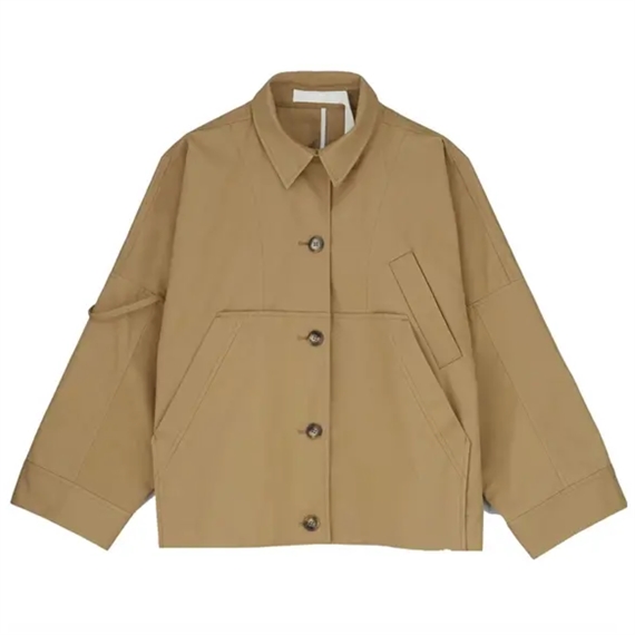 Jules Jakke fra Aiayu er en tidløs klassiker med elegante detaljer såsom uniform-inspireret shape, skrålommer og knappelukning. Jakken er designet med et let oversized fit, så vi anbefaler du vælger din normale størrelse. Jules jakken falder utrolig let og er udformet i Ventile-stof, som er en ekstra kraftig, tætvævet bomuld, der gør jakken exceptionel holdbar. Den ekstra tætte vævning skaber en glat overflade, som på naturlig vis holder vind og vand effektivt ude.