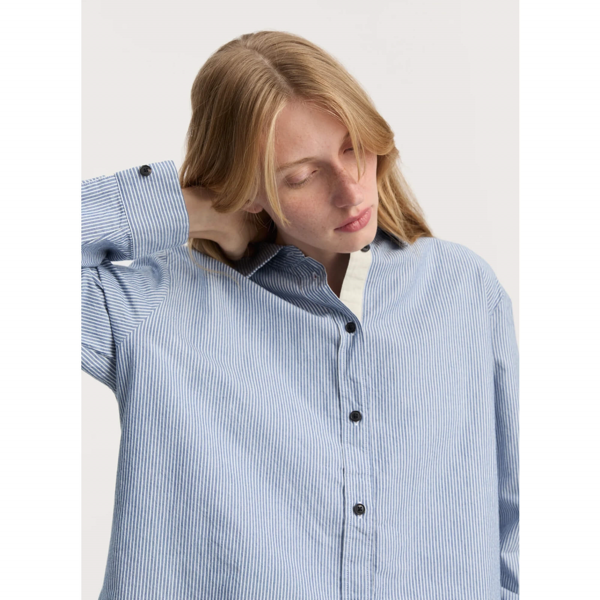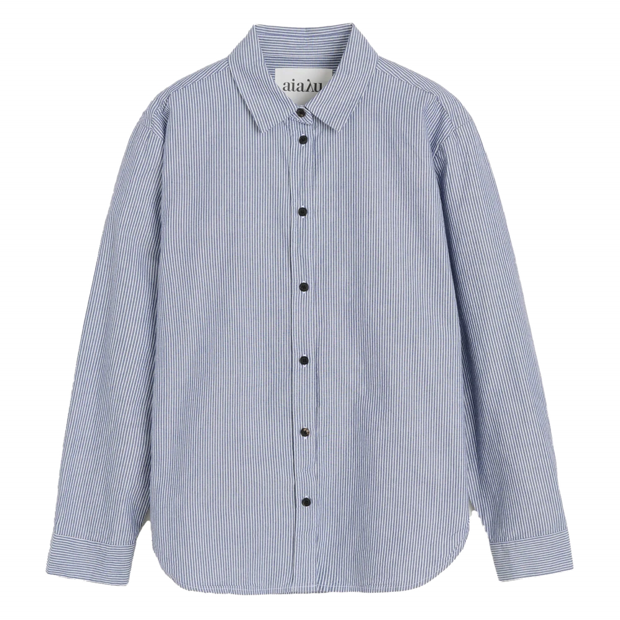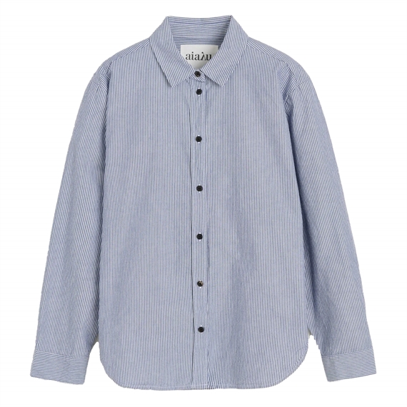 Denne blåstribede skjorte fra Aiayu er et tidløst design med et afslappet og moderne udtryk. Den er fremstillet i kraftig, økologisk bomuld, som giver et naturligt og let skulpturelt fald. Skjorten har en oversized, kantet pasform med klassisk krave og smukke hornknapper, der understreger det enkle og elegante design. Diskrete workwear-inspirerede detaljer ved manchetterne og i sidesømmene giver skjorten et raffineret og karakterfuldt udtryk – Perfekt til en stilren og alsidig garderobe.