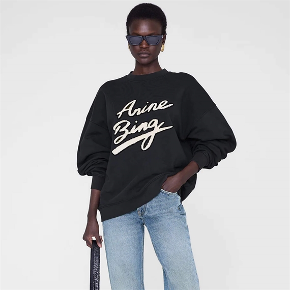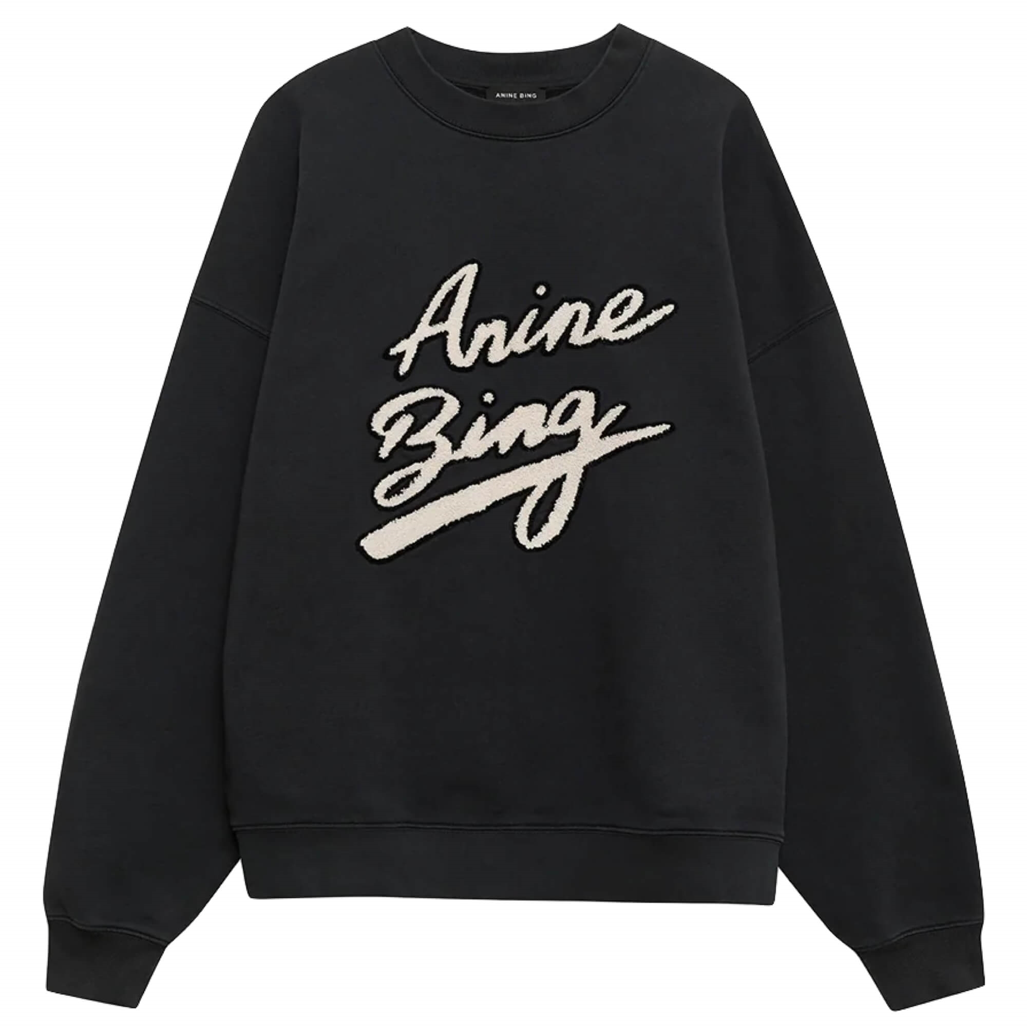 Anine Bing Miles Chenille Signature Sweatshirt, Sort Anine Bing Miles Chenille Signature Sweatshirt, Sort