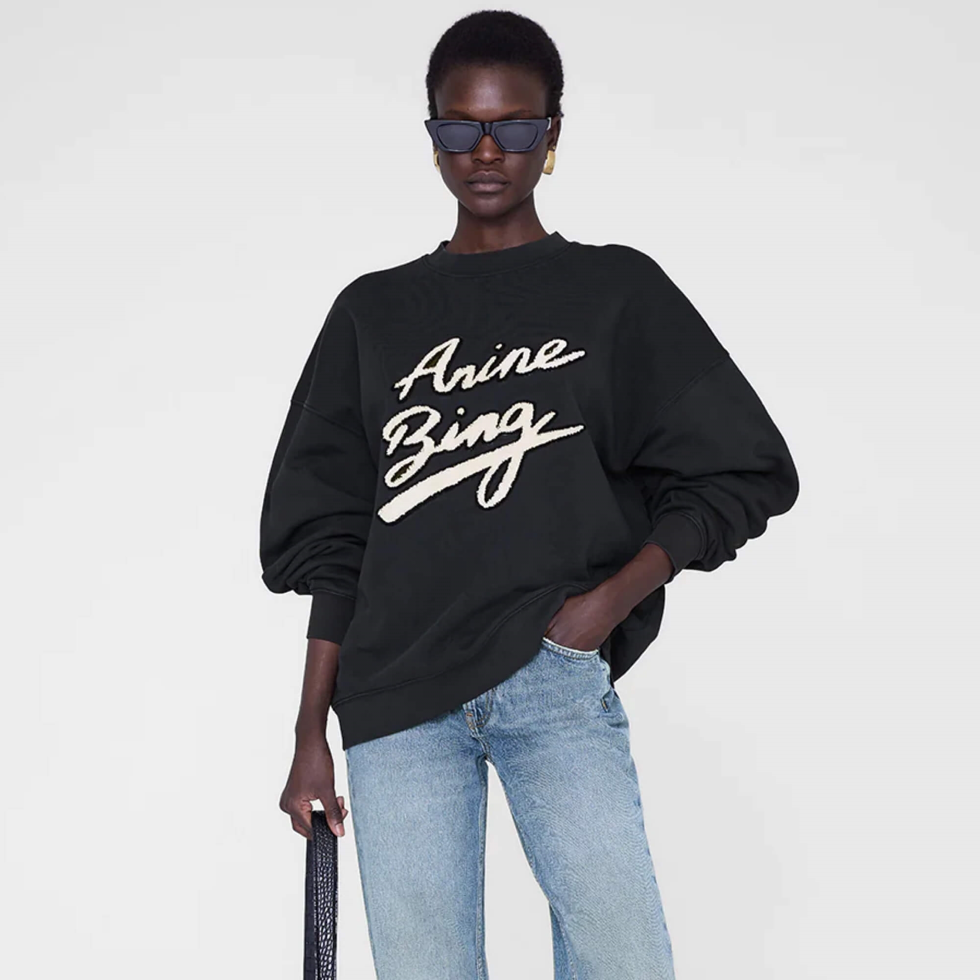 Anine Bing Miles Chenille Signature Sweatshirt, Sort