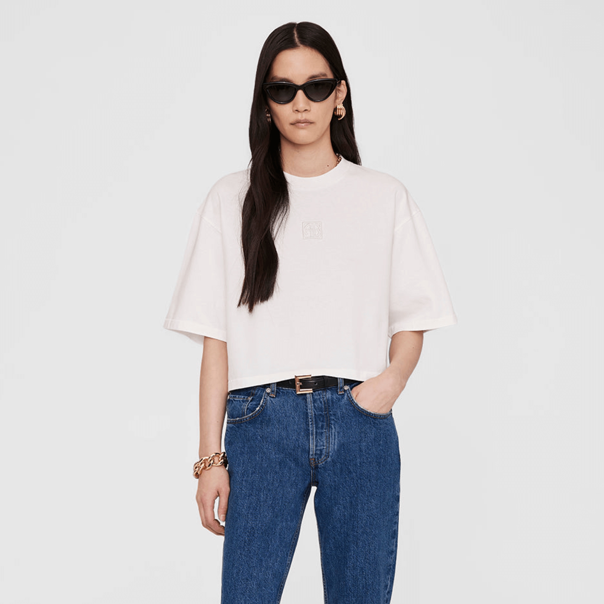 • Bedømmelse for Anine Bing Myers Cropped Monogram T-shirt, Ivory