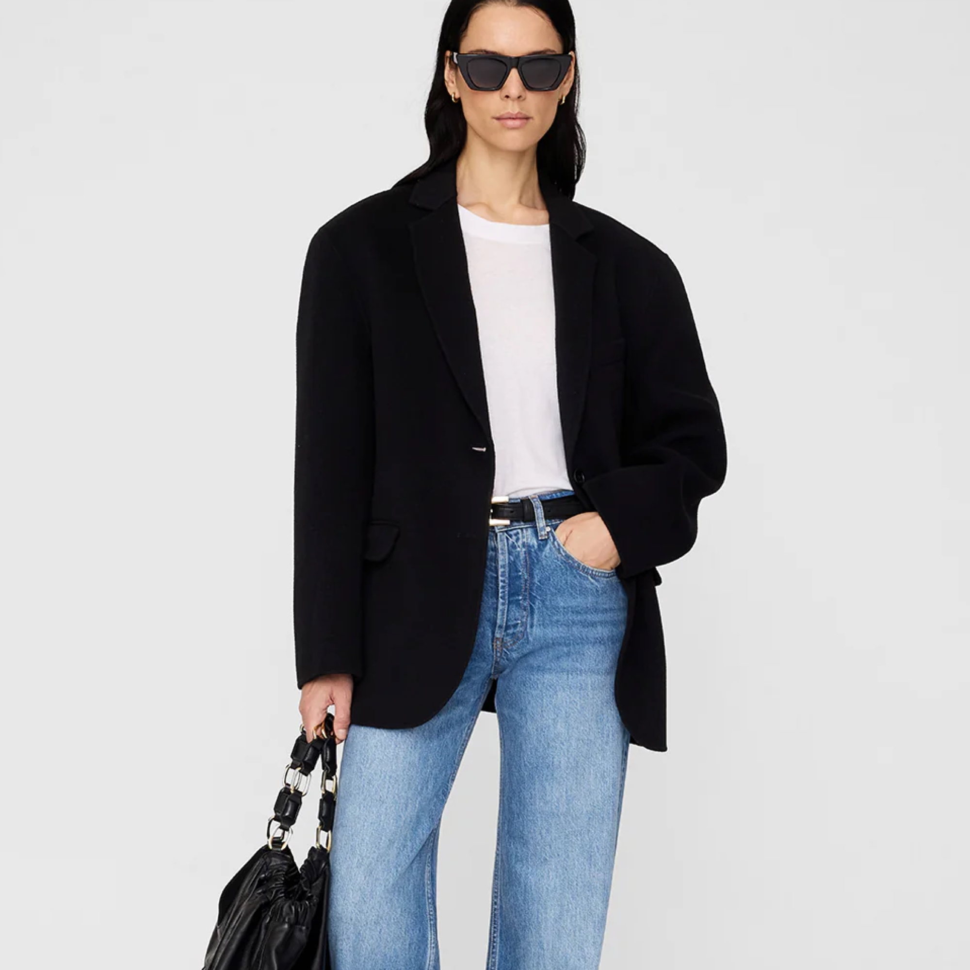 Anine Bing Quinn Blazer, Black Cashmere Blend
