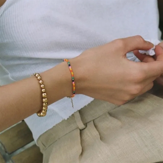 Smukt guld armbånd fra Anni Lu. Goldie-armbåndet fra ANNI LU giver en følelse af tidløse og eksklusive materialer. Armbåndet vil sikre, at du omfavner din egen indre glamour. Dette armbånd er fremstillet i messing med 24-karat guld-ion-belægning og detaljeret i smukke karamelrøde Agater. Armbåndet kan justeres fra 18 - 22 cm.