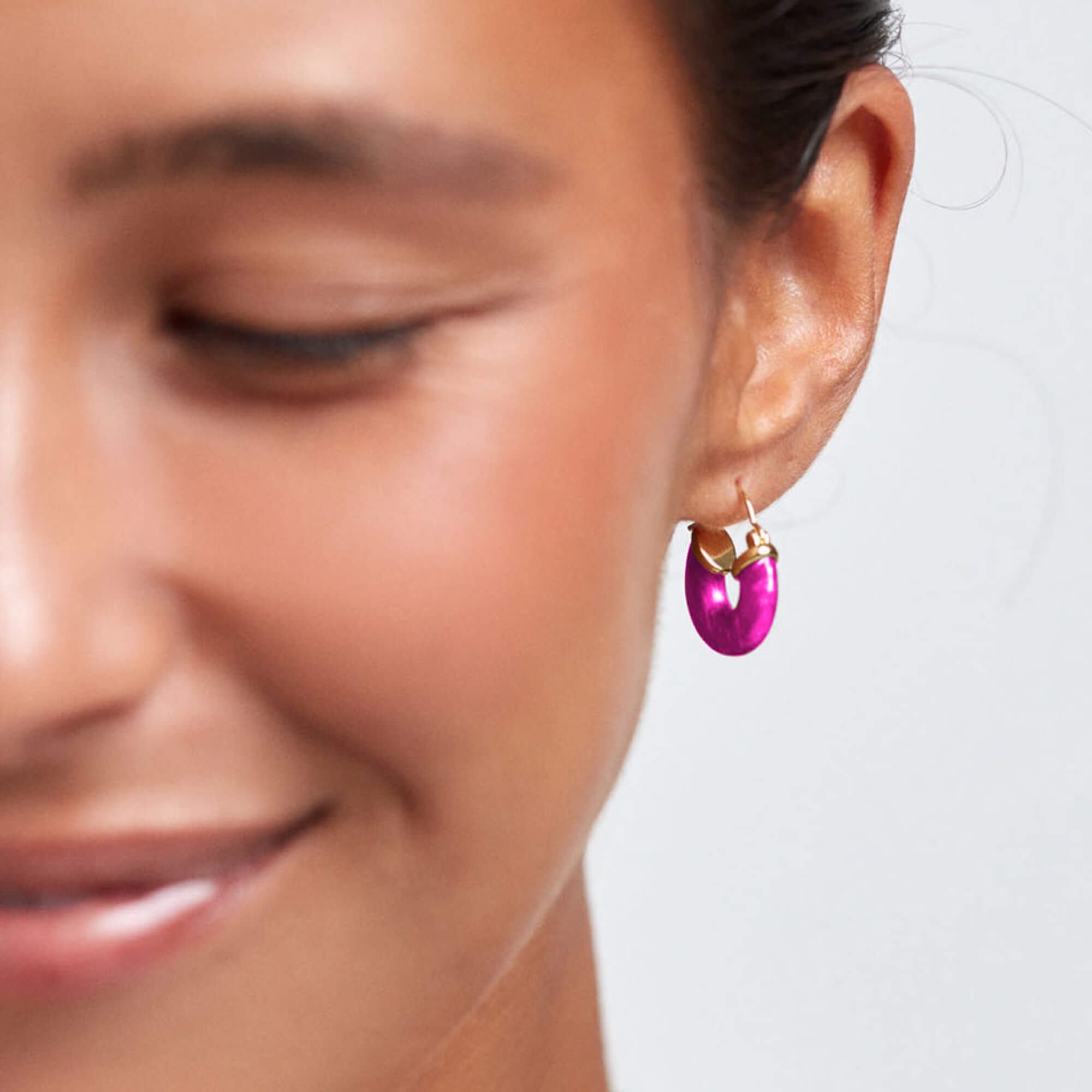 Lad Anni Lu's Petit Swell Hoop i den skønneste pink og guld farve løfte dit look med naturlig elegance og farverig charme. Perfekte til både hverdag og fest – et stilfuldt statement, du vil elske at bære igen og igen.
