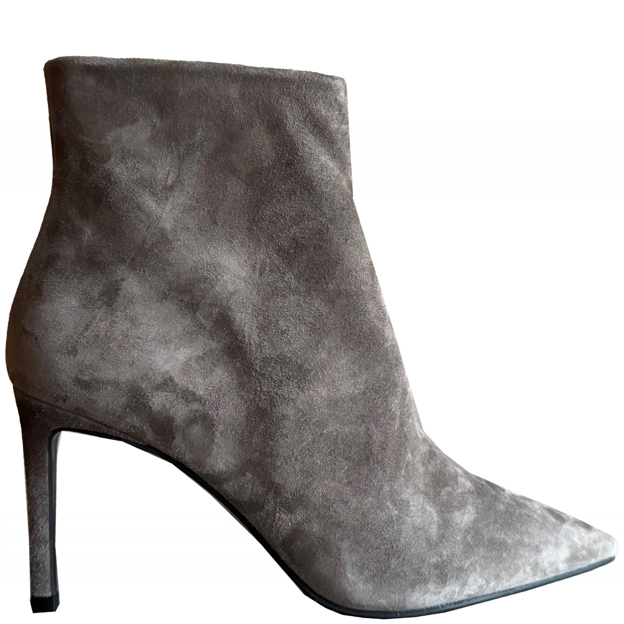 Håndlavede støvletter fra Billi Bi i det blødeste grå ruskind med spids snude og elegant 8 cm stilethæl. Designet fuldendes med en diskret lynlåslukning på indersiden, som giver et stilrent udtryk og nem pasform. En klassisk støvlet, der forener tidløs elegance med høj komfort, så du både kan bære dem til hverdag og fest. De perfekte støvletter til dig, der ønsker et feminint og sofistikeret look uden at gå på kompromis med komforten.