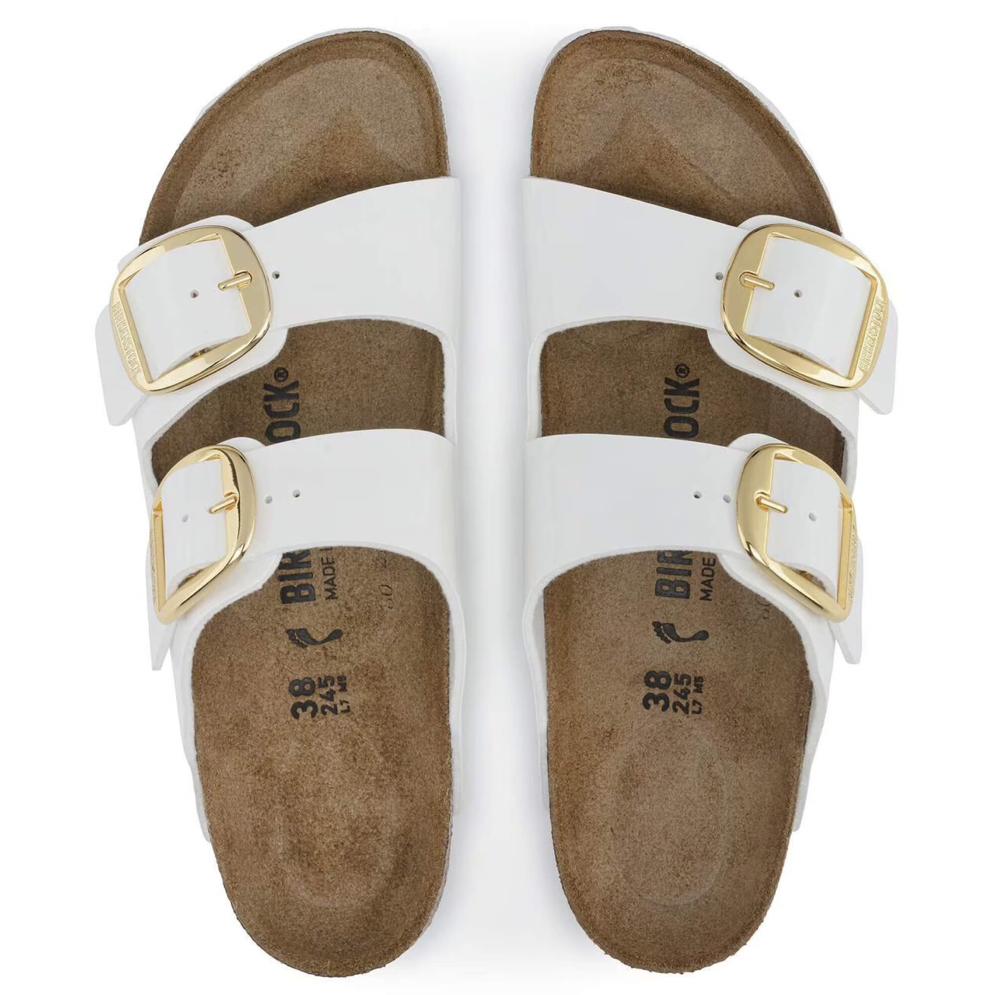 Arizona sandalerne forener ikonisk design med et moderne, iøjnefaldende udtryk. Det store, elegante spænde tilfører et markant twist til den klassiske silhuet. Sandalen er fremstillet i hudvenligt og slidstærkt Birko-Flor® med skinnende lakoverflade – Et stilrent valg til både hverdag og sommerens outfits.