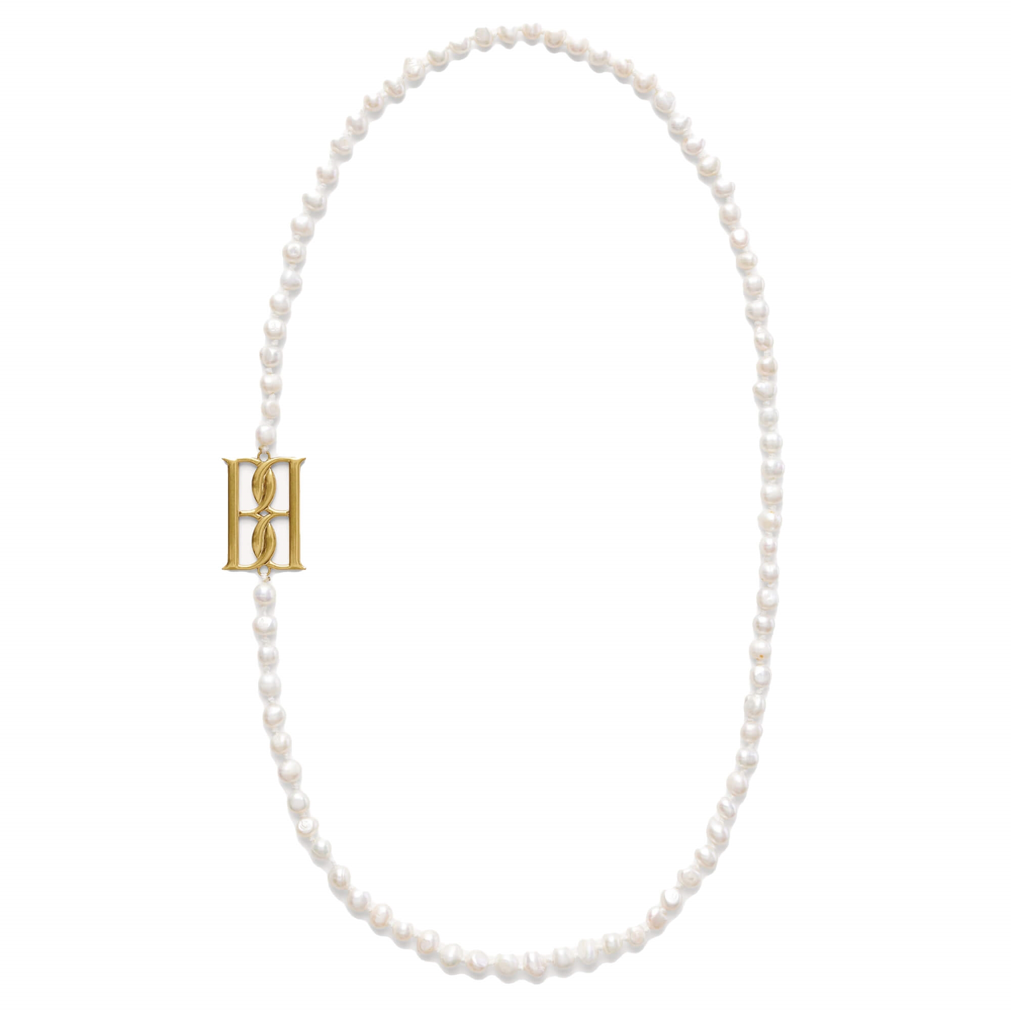 Giv boheme-looket et sofistikeret twist med Chakallo-monogramhalskæden. Fremstillet af naturlige ferskvandsperler og afsluttet med et stort gyldent monogram for et elegant og iøjnefaldende design.