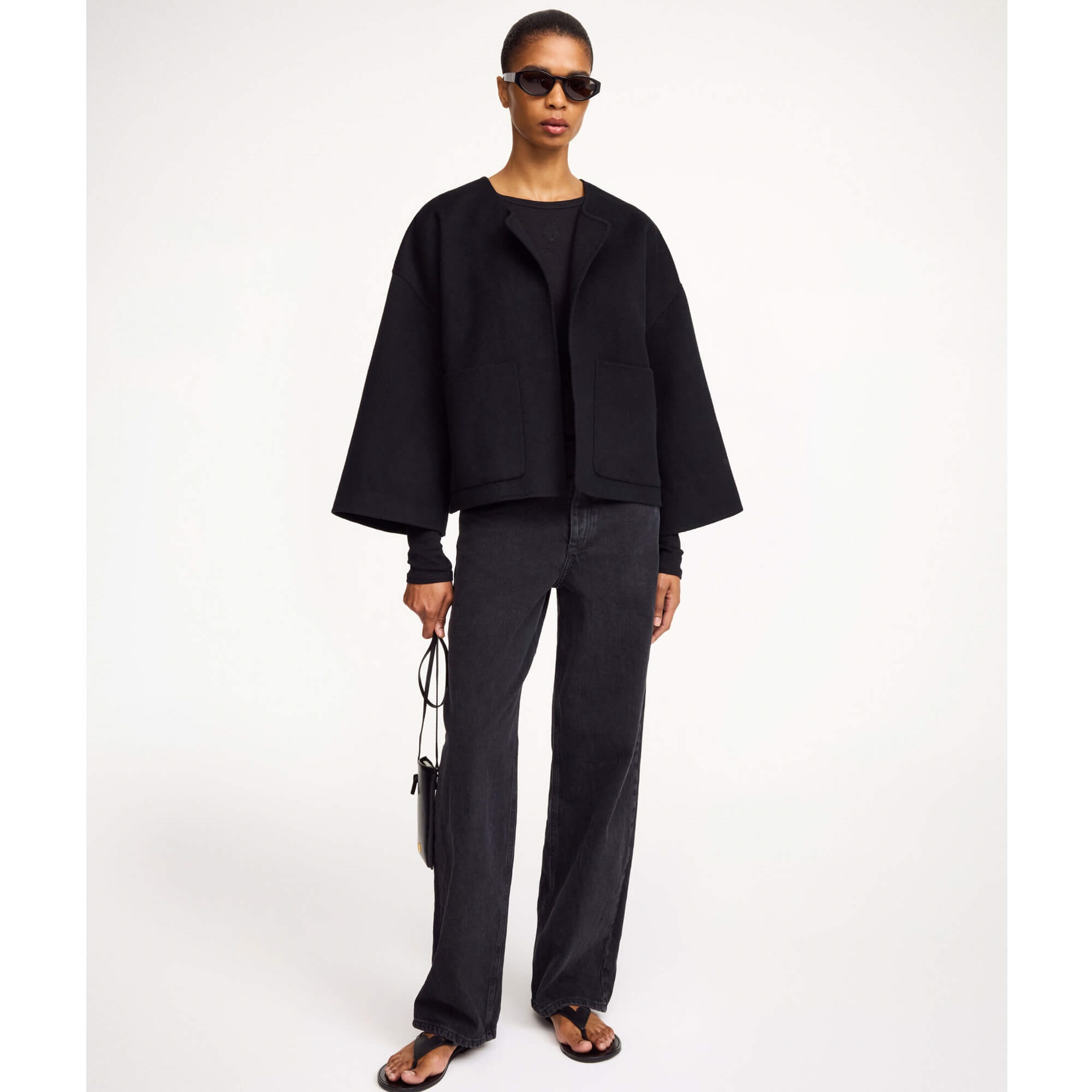 Sofistikeret uldjakke i et løst og feminint design - Perfekt til overgangssæsoner. Jakken er uforet med brede ærmer, dropped shoulders og store frontlommer, som giver et afslappet look. Den har ingen lukning og falder flot over ethvert outfit. Jakken er stor i størrelsen, så det anbefales at gå én størrelse ned.