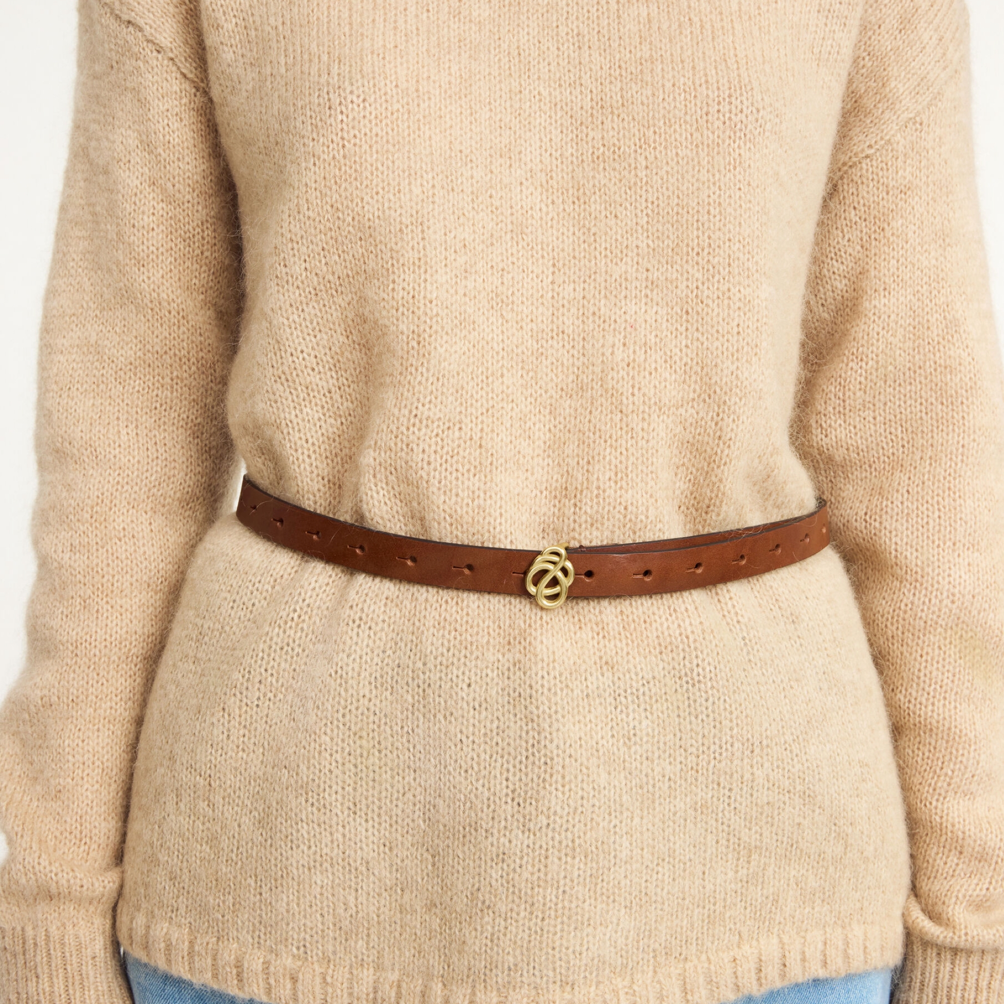 Ouma-bæltet fra By Malene Birger er det perfekte accessories-valg, når dit outfit skal løftes med raffineret elegance. Det er udført i smidigt, højkvalitetslæder, der både føles luksuriøst og holder formen smukt over tid. Det skulpturelle, gyldne Scribble-spænde fungerer som et kunstnerisk statement og tilfører et eksklusivt udtryk. Resultatet er et bælte, der ubesværet kan styles med alt fra skræddersyede bukser til dine yndlingsjeans.