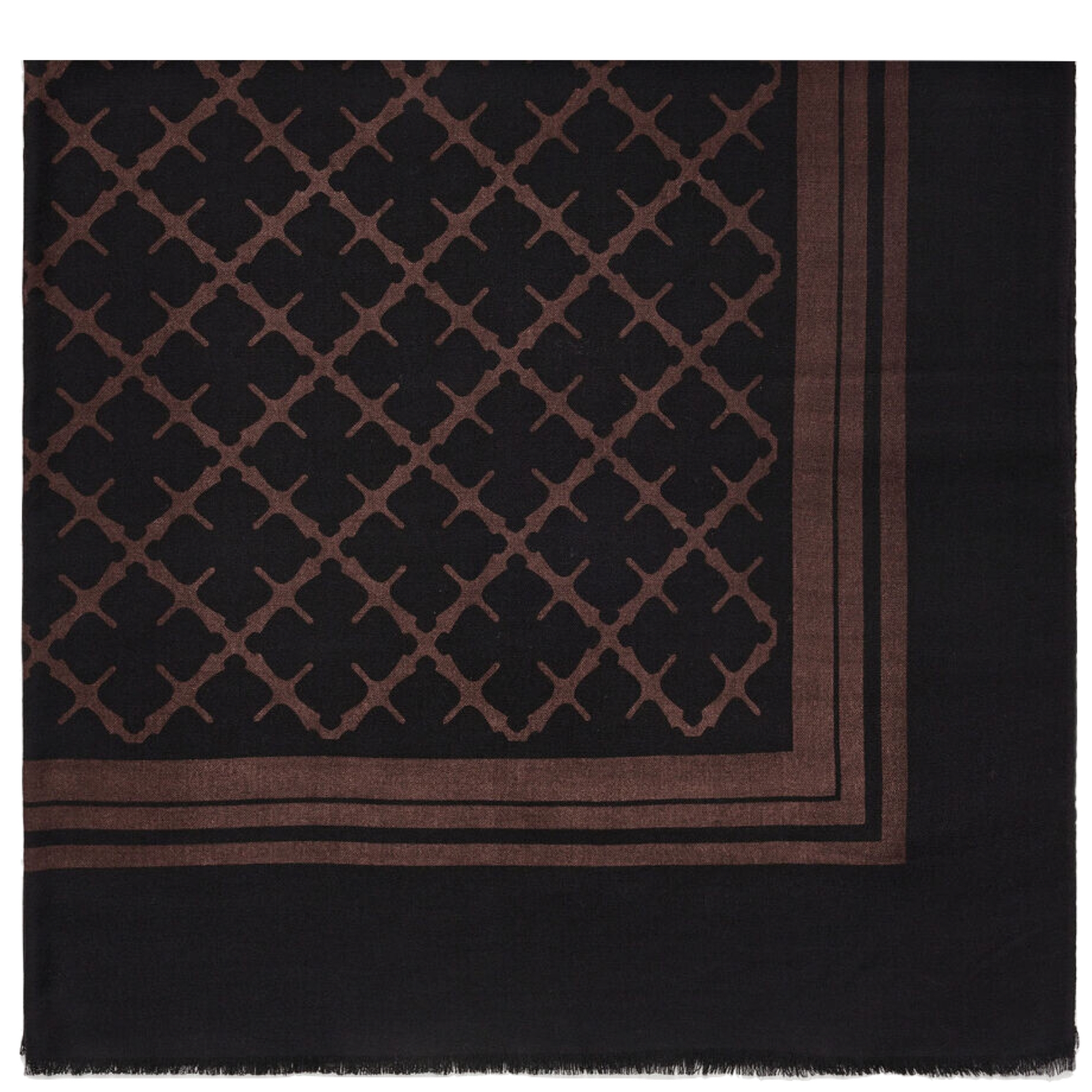 Det sorte mønster er smukt dekoreret med brandets ikoniske Signature Flower-motiv og afsluttes med rå, frynsede kanter, der tilfører et eksklusivt og håndlavet udtryk. Brug det snoet om halsen eller elegant draperet over skuldrene for et sofistikeret look med kant.