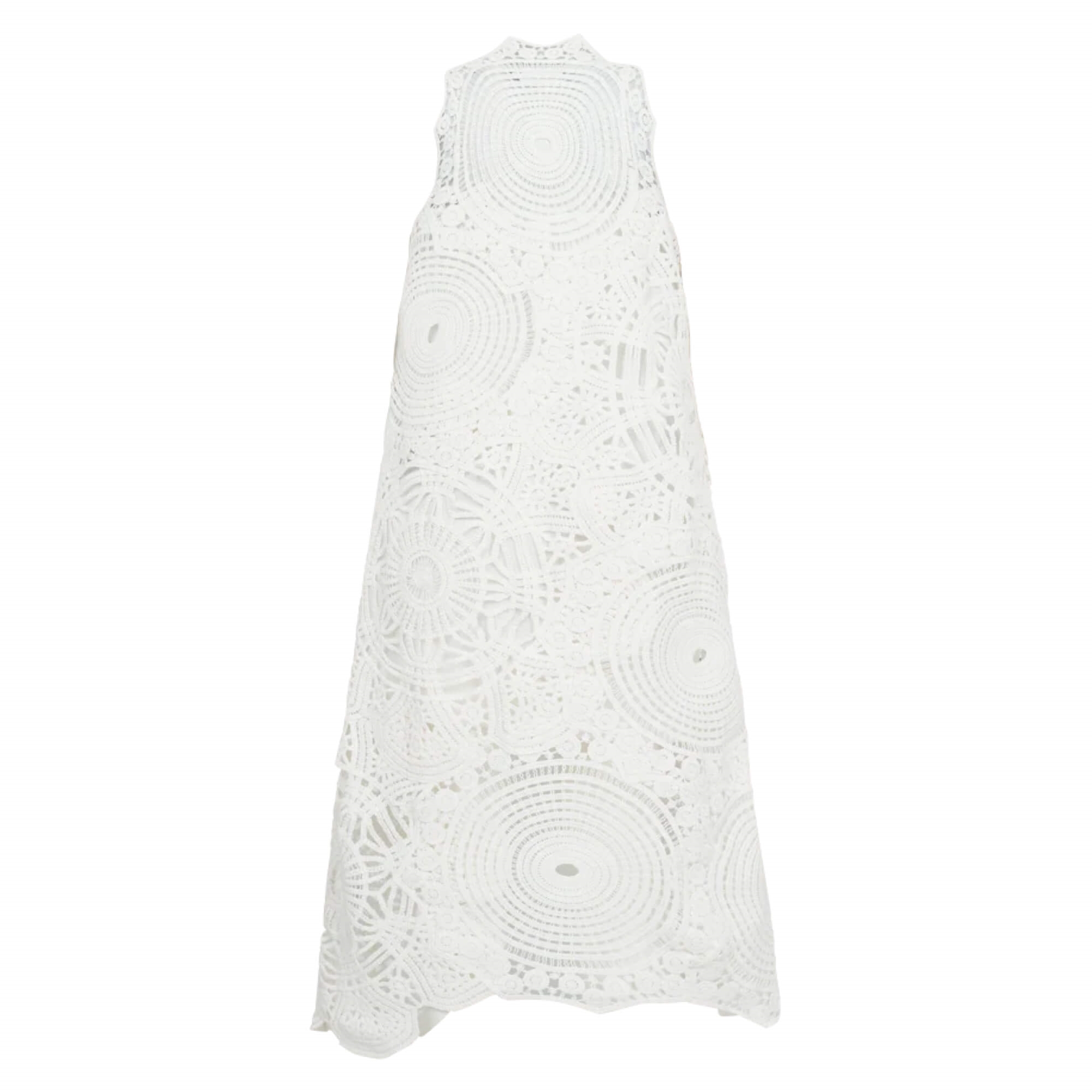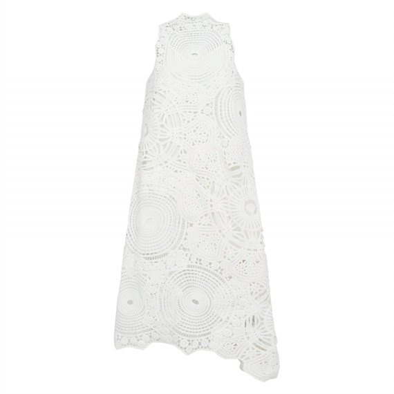 CMCRYSTAL er en smuk statementkjole, der emmer af sommer og elegance. Det hæklede blondedesign giver et let og luftigt udtryk, mens den høje hals og de fine bølgede kanter tilfører et sofistikeret touch. Den asymmetriske bund og den bløde A-form skaber en flot silhuet med et elegant fald, der bevæger sig let med kroppen. Den medfølgende underkjole sikrer komfort og gør kjolen nem at bære – perfekt til både sommerfester og lyse aftener, hvor du ønsker et feminint og iøjnefaldende look.