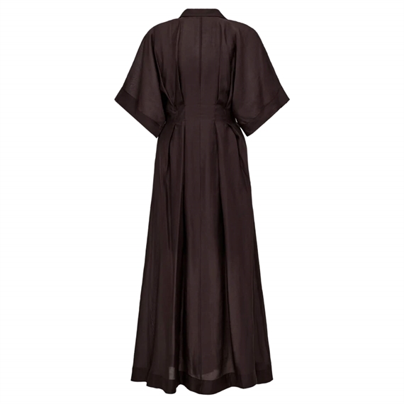 CMMOLLY-DRESS er en elegant kjole i en eksklusiv kvalitet. Den har knaplukning langs fronten, V-udskæring med revers og praktiske sidelommer. De trekvartlange ærmer med vidde og det brede skørt skaber en smuk silhuet, mens læg i taljen giver et raffineret og feminint udtryk.