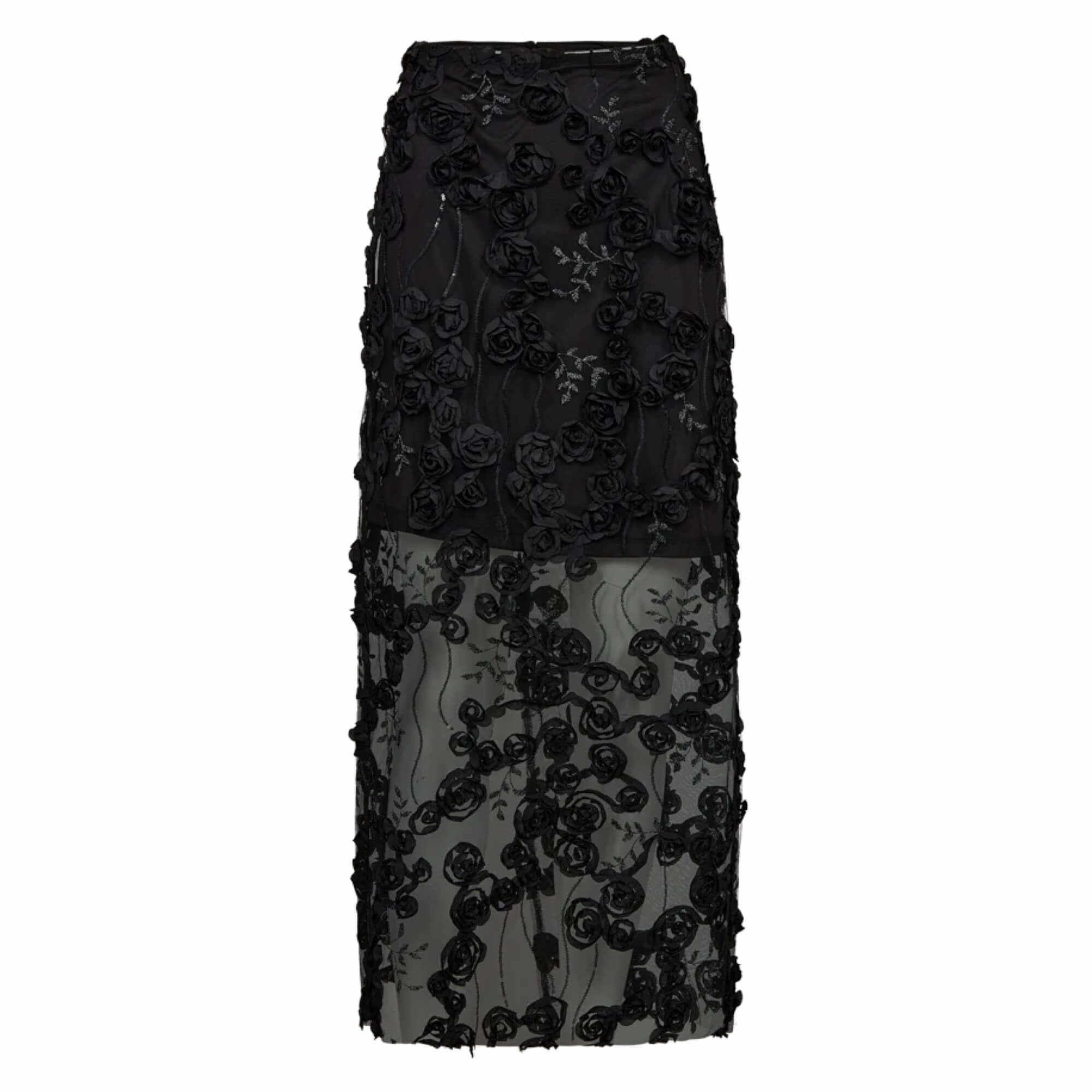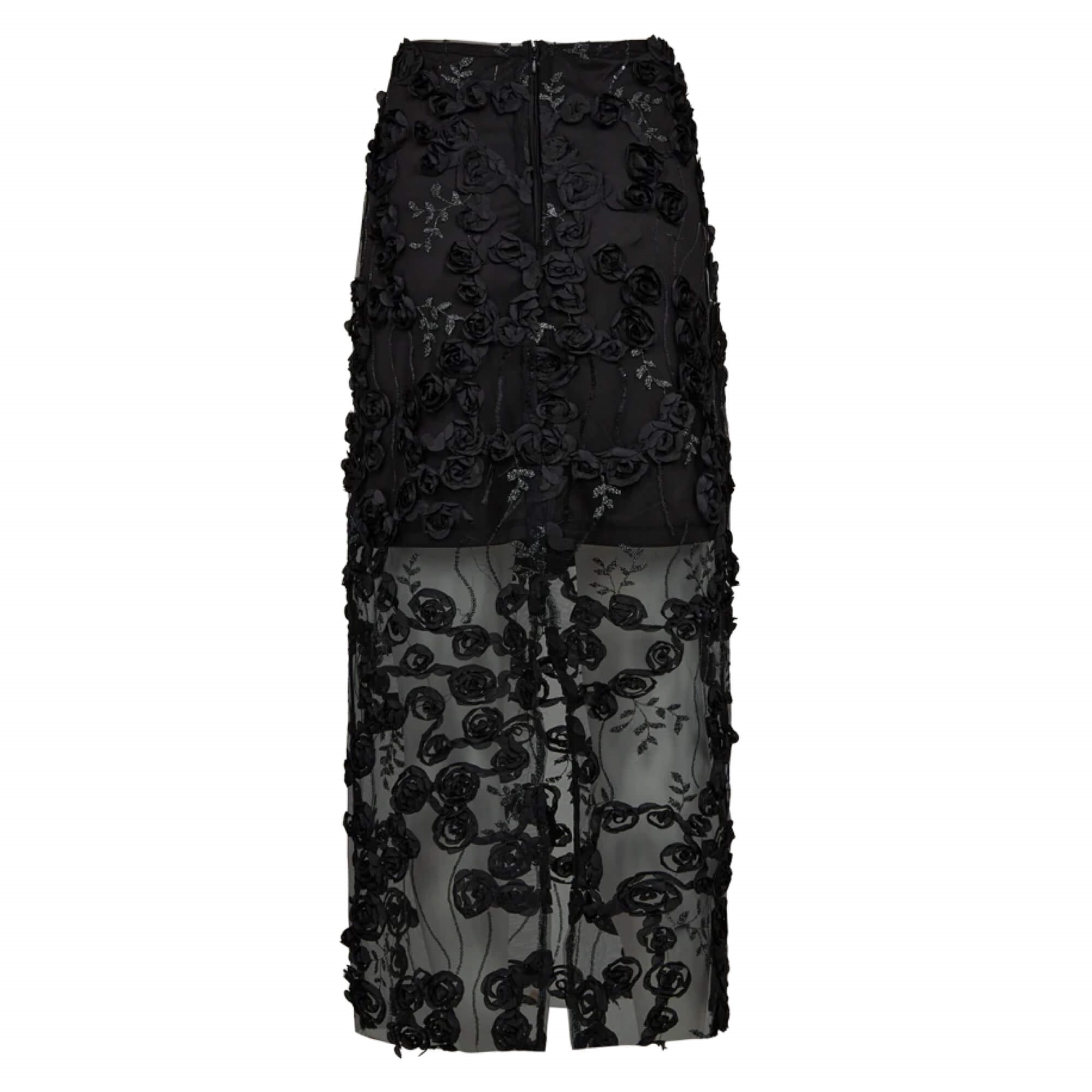 Den enkle, lige silhuet skaber balance til de dekorative detaljer, mens slidsen bagtil tilfører et strejf af bevægelse og lethed. Perfekt til sommerens særlige anledninger – style den med en enkel top og sandaler eller hæle for et sofistikeret og sommerligt look.