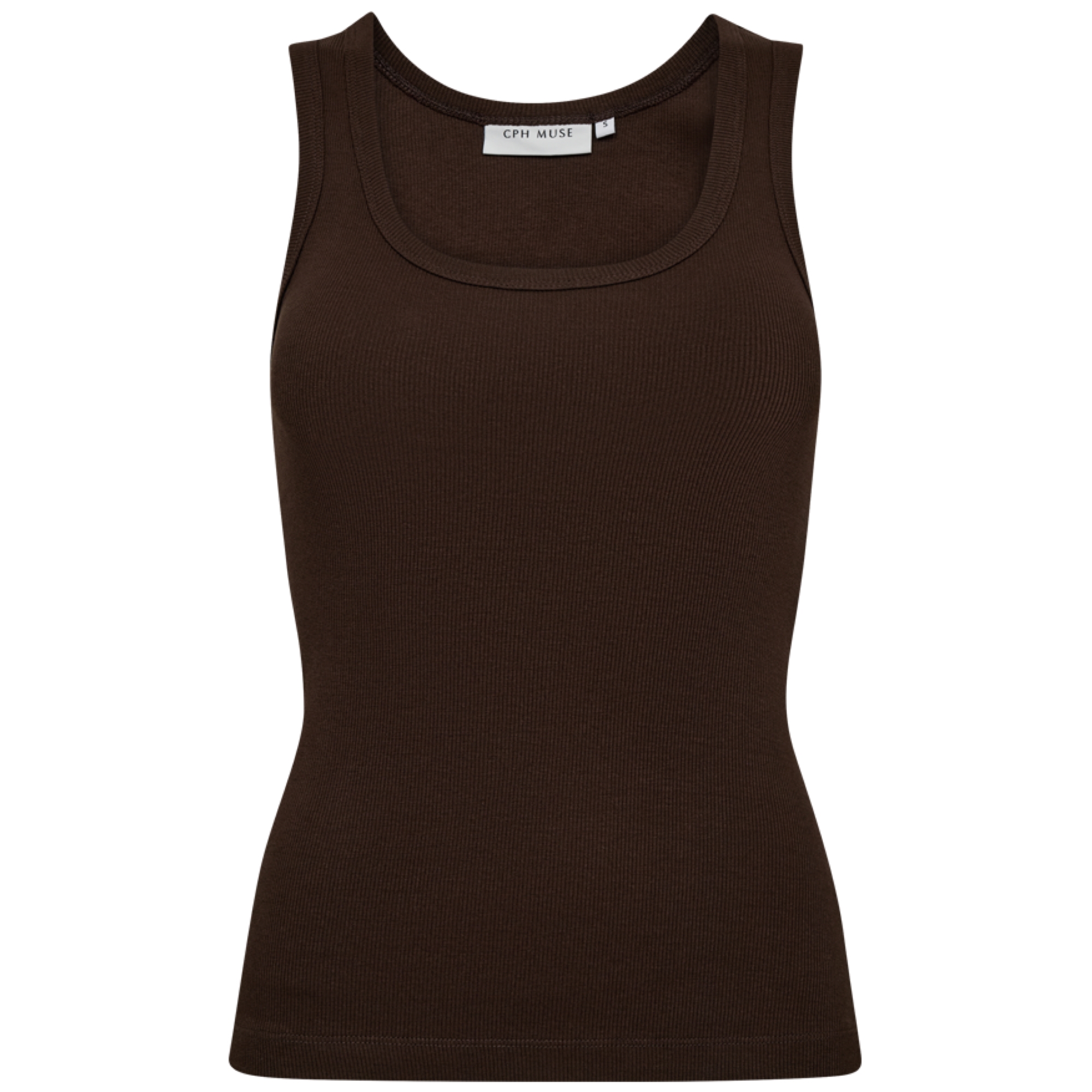 CMSIV toppen fra Copenhagen Muse er en tætsiddende top i kraftig rib med høj elasticitet, der holder formen vask efter vask. Designet med rund hals, brede stropper og diskret logo på ryggen. En enkel og alsidig top, der passer til enhver garderobe.