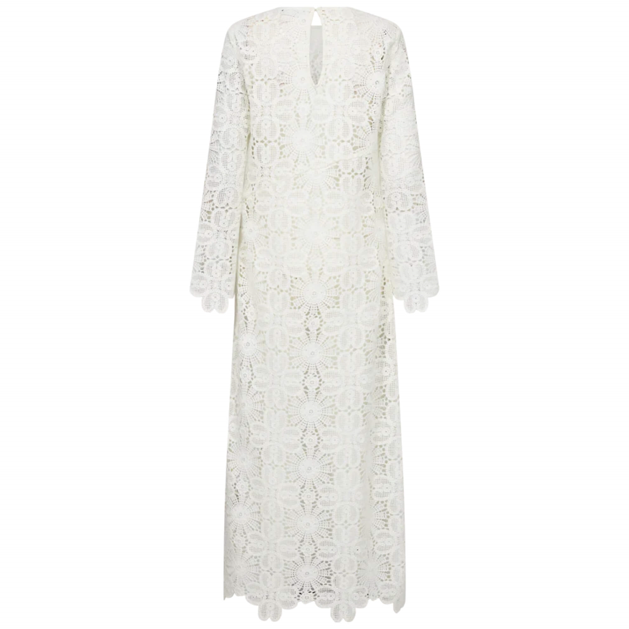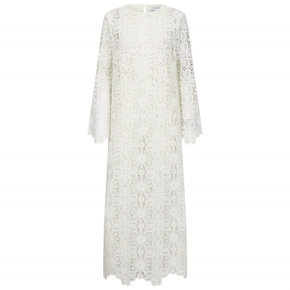 CMVILJA-DRESS fra Copenhagen Muse er en let og elegant sommerkjole med et feminint udtryk. Den løse pasform og de lange ærmer giver et afslappet, luftigt look, mens den runde hals og den fine knaplukning med slids i nakken tilføjer et diskret, sofistikeret touch. Det smukke allover broderede mønster giver kjolen et eksklusivt og sommerligt præg - Perfekt til både solrige dage og lyse aftener, hvor du ønsker et ubesværet, stilfuldt look.
