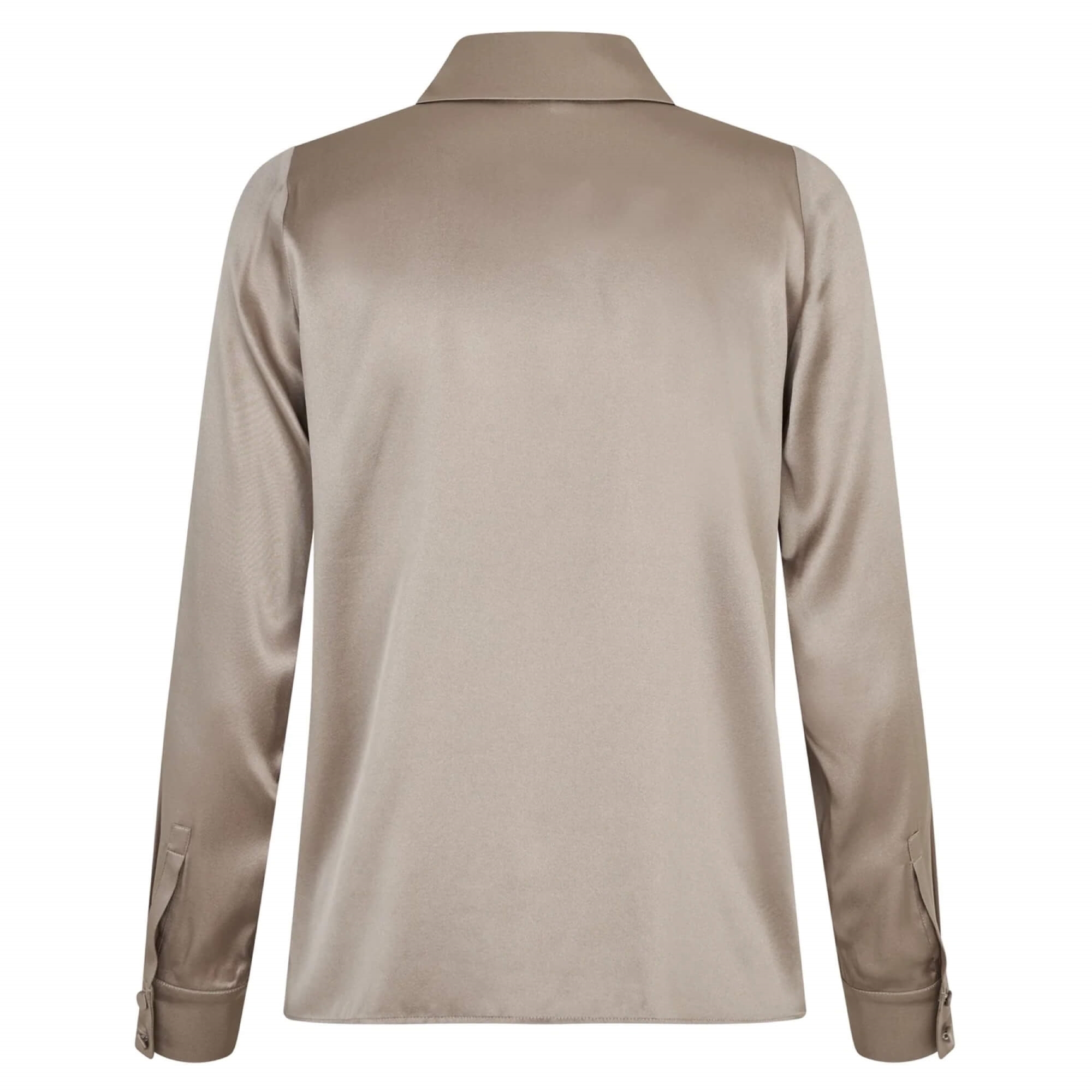 Denne skjorte udstråler klassisk elegance med et moderne twist. Den er designet i en glansfuld satin-kvalitet, som giver et luksuriøst og feminint udtryk. Skjorten har en skarp krave, knaplukning hele vejen ned foran med stofbetrukne knapper og lange ærmer med manchetter for et sofistikeret finish.