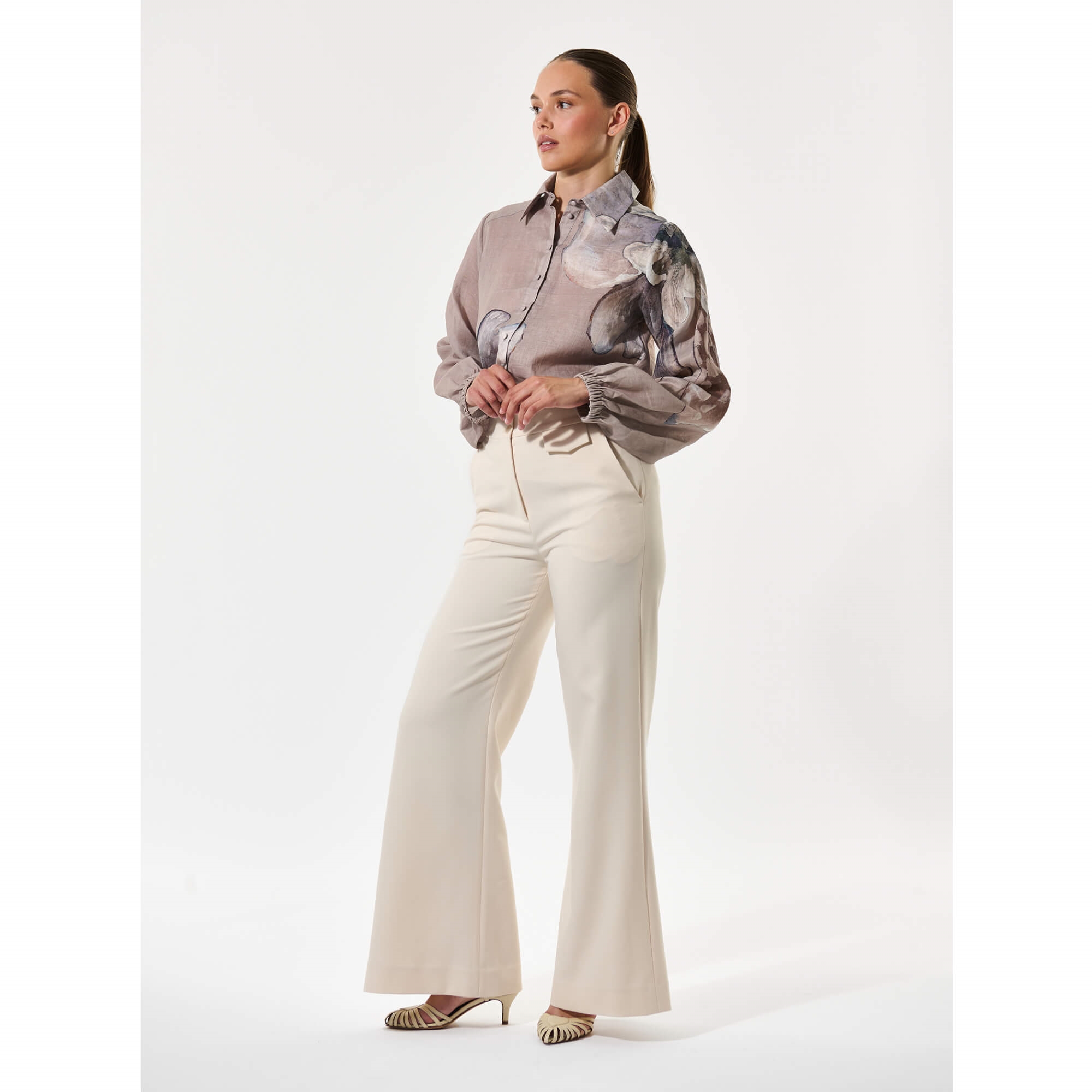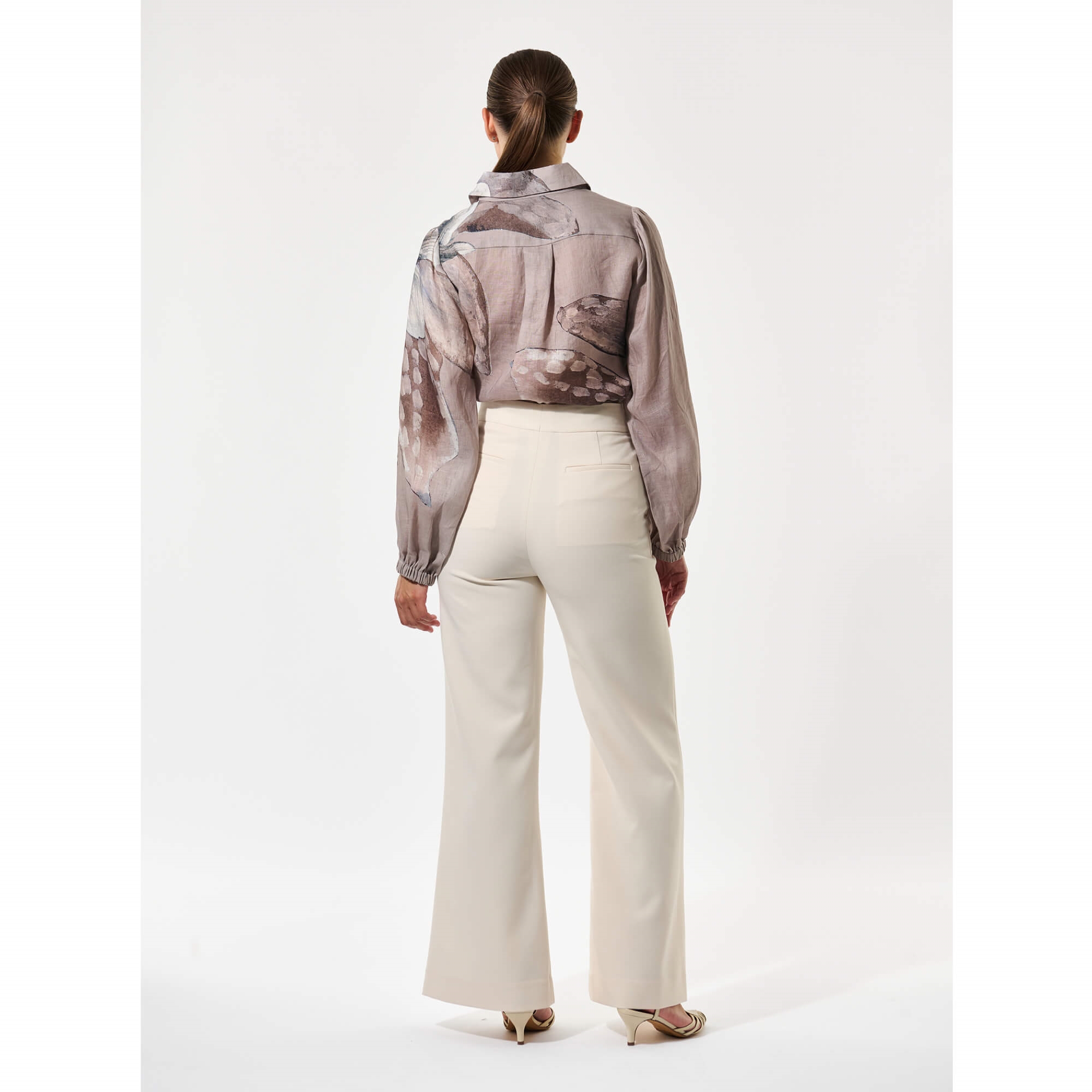 LamarsDEA Bukser fra Dea Kudibal er et par stilrene og feminine bukser med en høj talje og en pasform, der sidder tæt over hofterne, før benene falder ud i et let flare. Bukserne er fremstillet i en blød viskoseblanding i en klassisk cream-farve. De er nemme at style med en silkebluse for et elegant hverdagslook eller som en del af et gennemført sæt sammen med Yasma Blazeren.