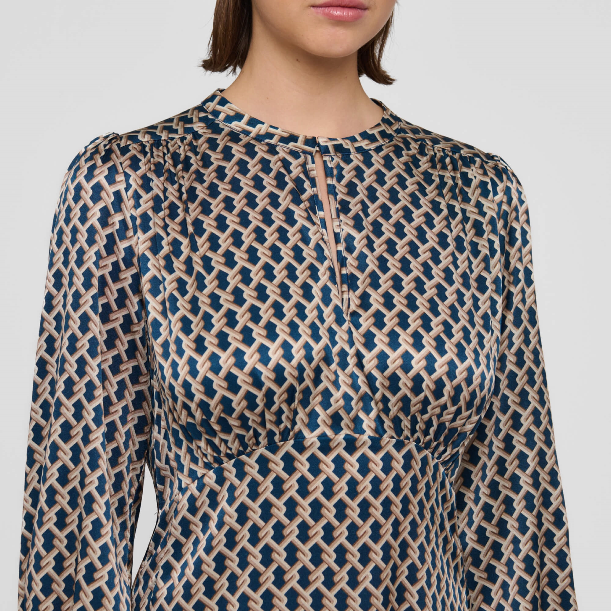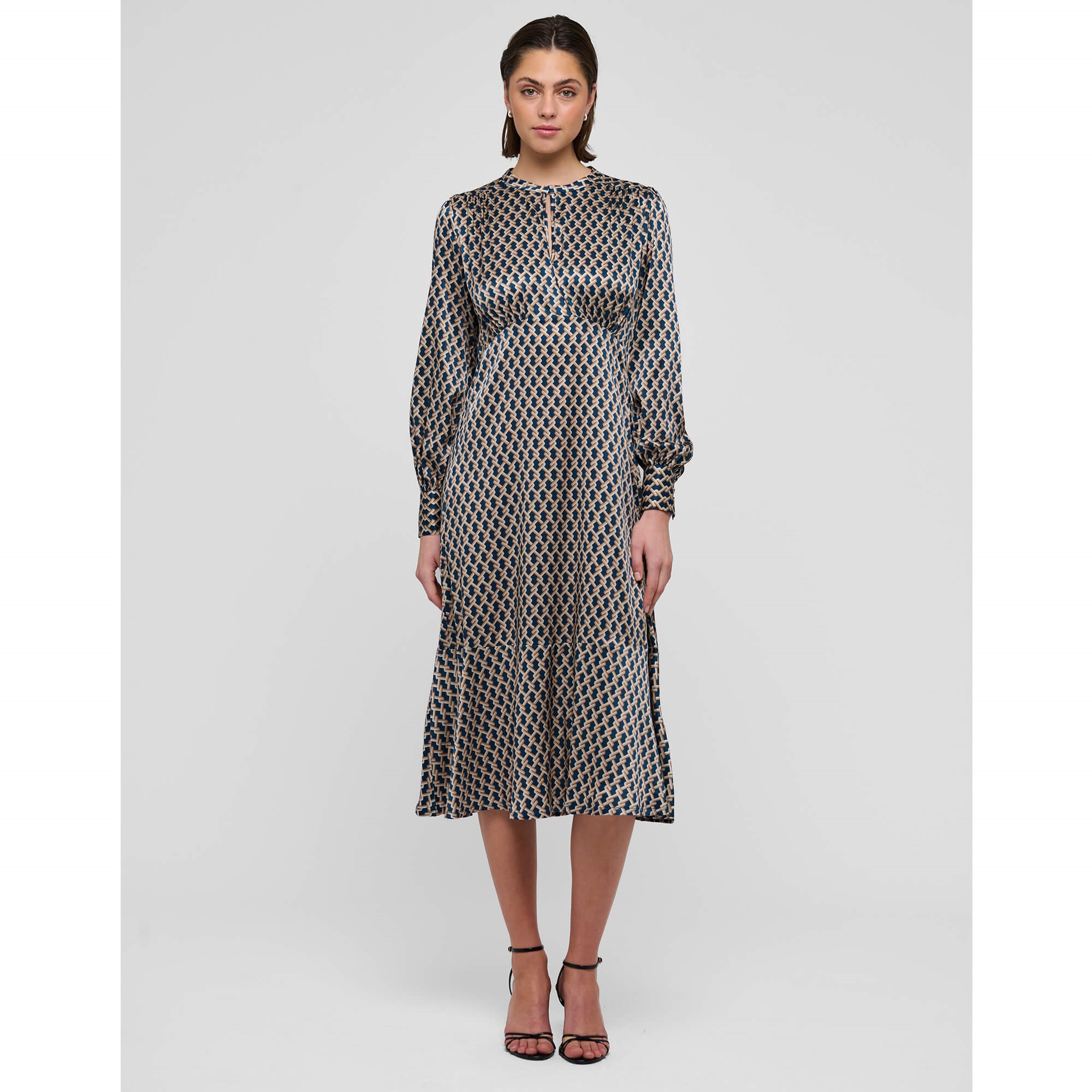 RumerDEA-kjolen fra Dea Kudibal er skabt i en let og luksuriøs silke-stretch kvalitet, der falder smukt om kroppen og sikrer en behagelig pasform hele dagen. Printet Tangle Biscotti byder på varme, harmoniske nuancer med et sofistikeret mønster, der giver kjolen et levende og raffineret udtryk.