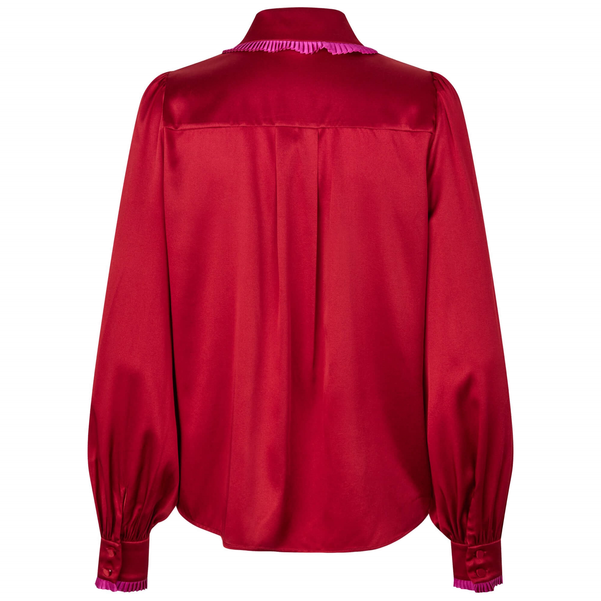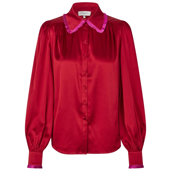 UmaDEA silkeskjorten fra Dea Kudibal er en skøn skjorte i Freesala/Cardinal med de smukkeste detaljer. Den har små læg i pink der løber rundt om kraven og i bunden af ærmerne, der er med til at løfte skjorten til noget særligt.