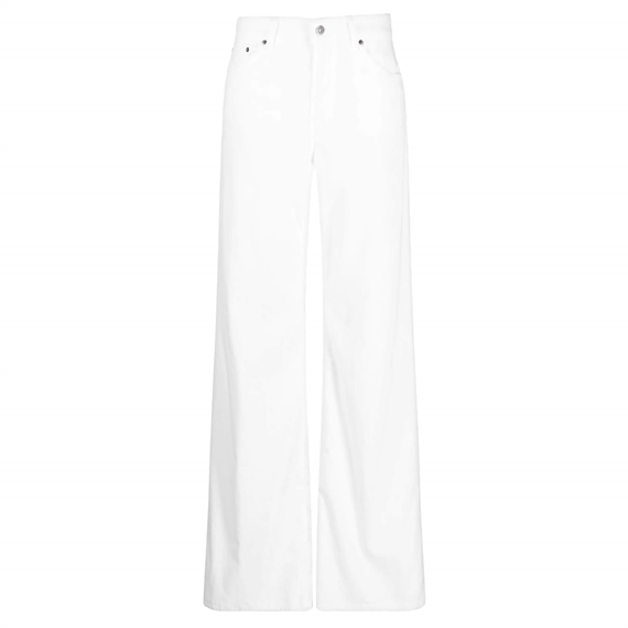 Disse jeans er designet med en mid-høj talje og brede ben, der giver et elegant og moderne udtryk. Pasformen er flatterende med en flot vidde, der falder naturligt ned langs benene og skaber en lang, stilren silhuet. De klassiske detaljer med lommer og knaplukning giver et tidløst denimlook. Den rene hvide farve gør dem lette at style og til et alsidigt valg i garderoben – perfekte både til hverdagsbrug og mere elegante outfits.