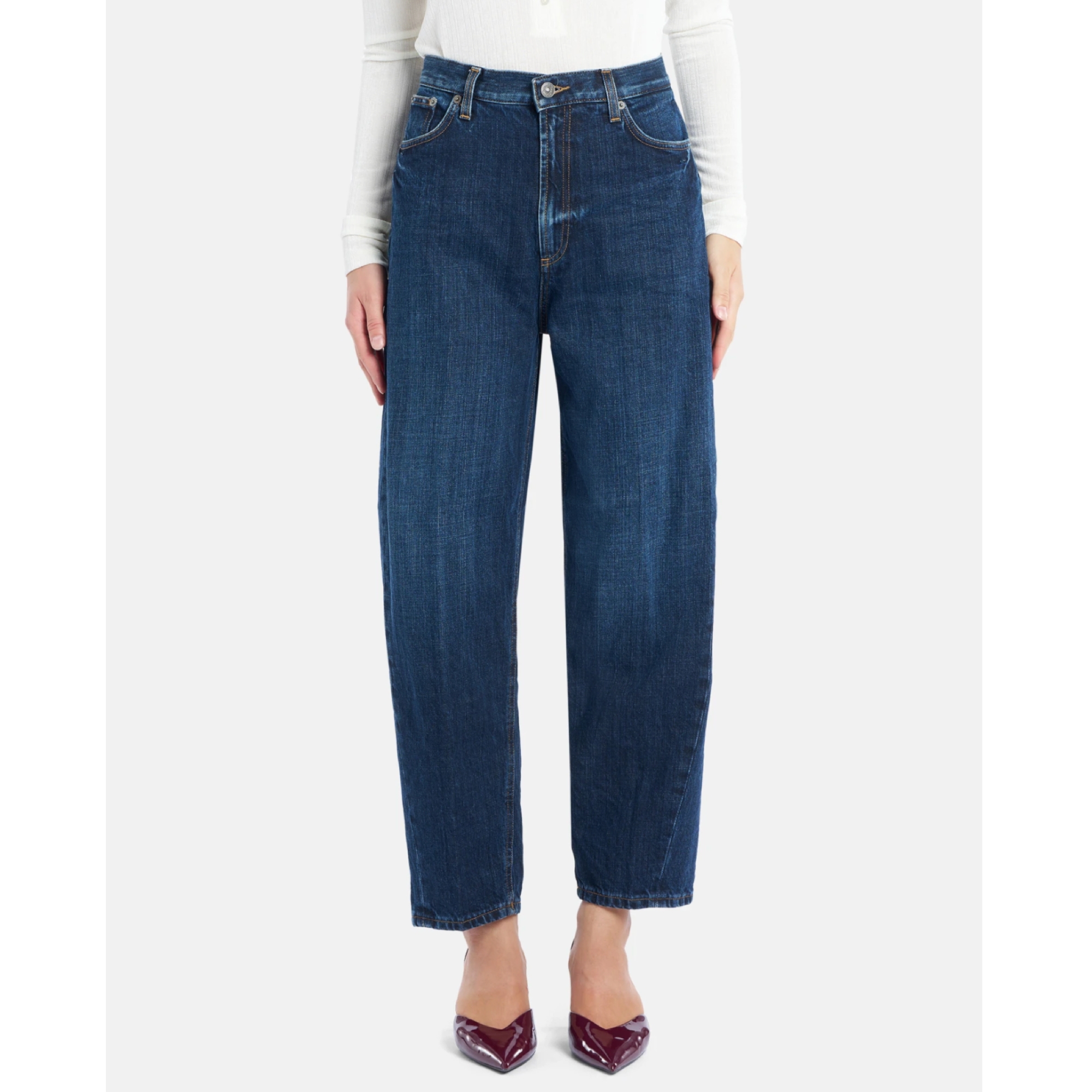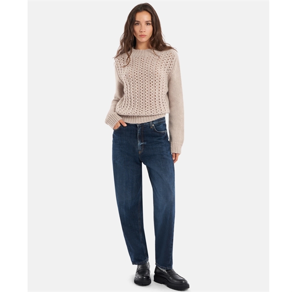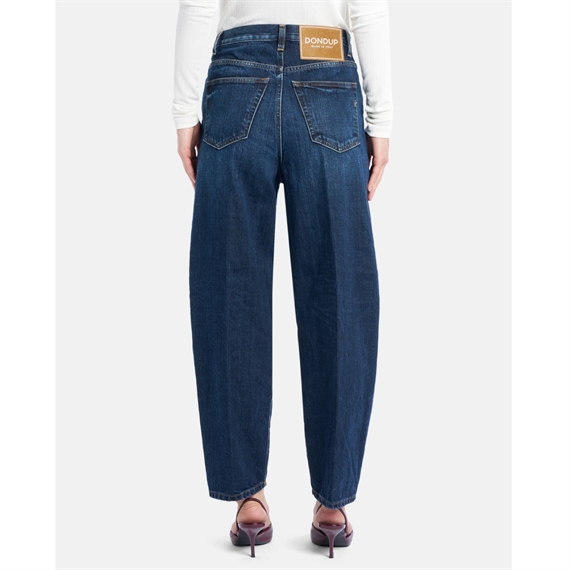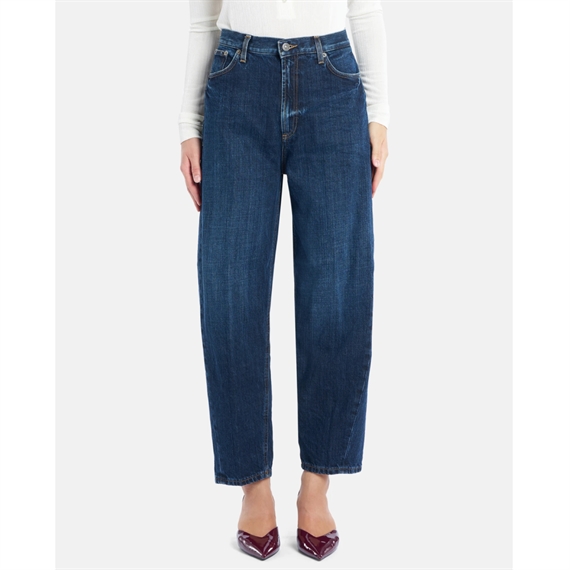 Disse Dondup Jeans er designet med en høj talje og en afslappet, lige pasform, der smalner let ind ved anklen, som skaber en flatterende silhuet, der er både komfortabel og moderigtig. Den strukturerede denim og det enkle snit gør dem perfekte til alt fra hverdag med sneakers og skjorte, til aftenbrug med stiletter og blazer.