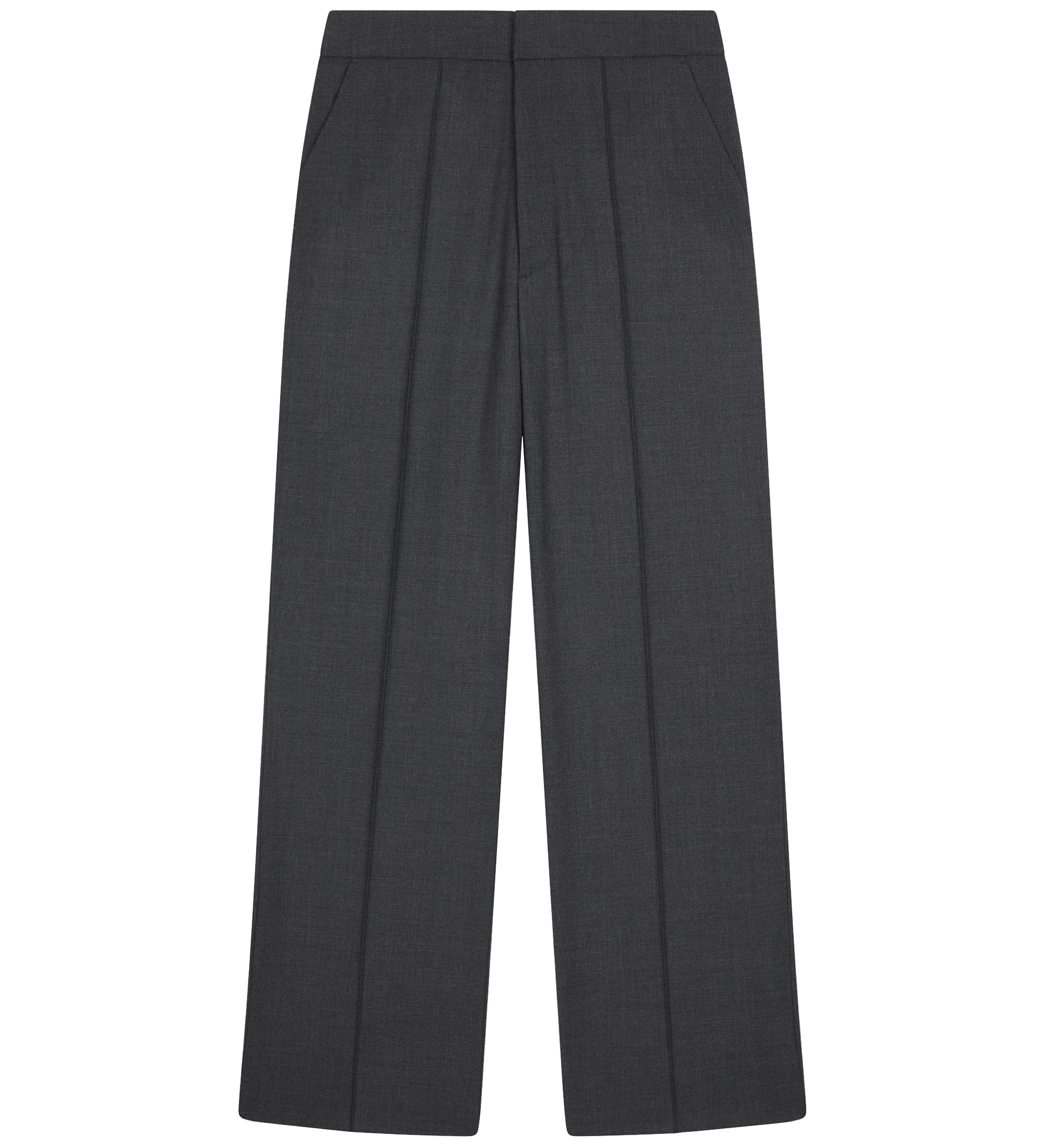 Disse bukser er sorte, højtaljede og har en løs, vid benform. De har et klassisk og elegant design med et let plisseret look foran, som giver dem et sofistikeret udtryk. Bukserne har bæltestropper og en skjult lukning foran. Stoffet virker glat og flydende, hvilket bidrager til et formelt og stilrent udseende. De passer godt til både kontorbrug og mere formelle lejligheder.