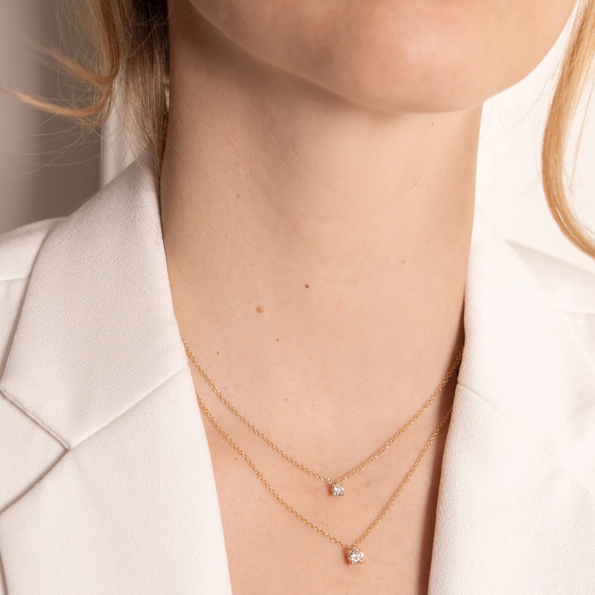 En solitaire-halskæde er smuk og enkel brugt alene, men kan også kombineres med andre halskæder og tilføre et klassisk udtryk. Lumina diamantsmykkerne repræsenterer essensen af det smukke og gedigne håndværk, som guldsmedene udfører på vores værksted.