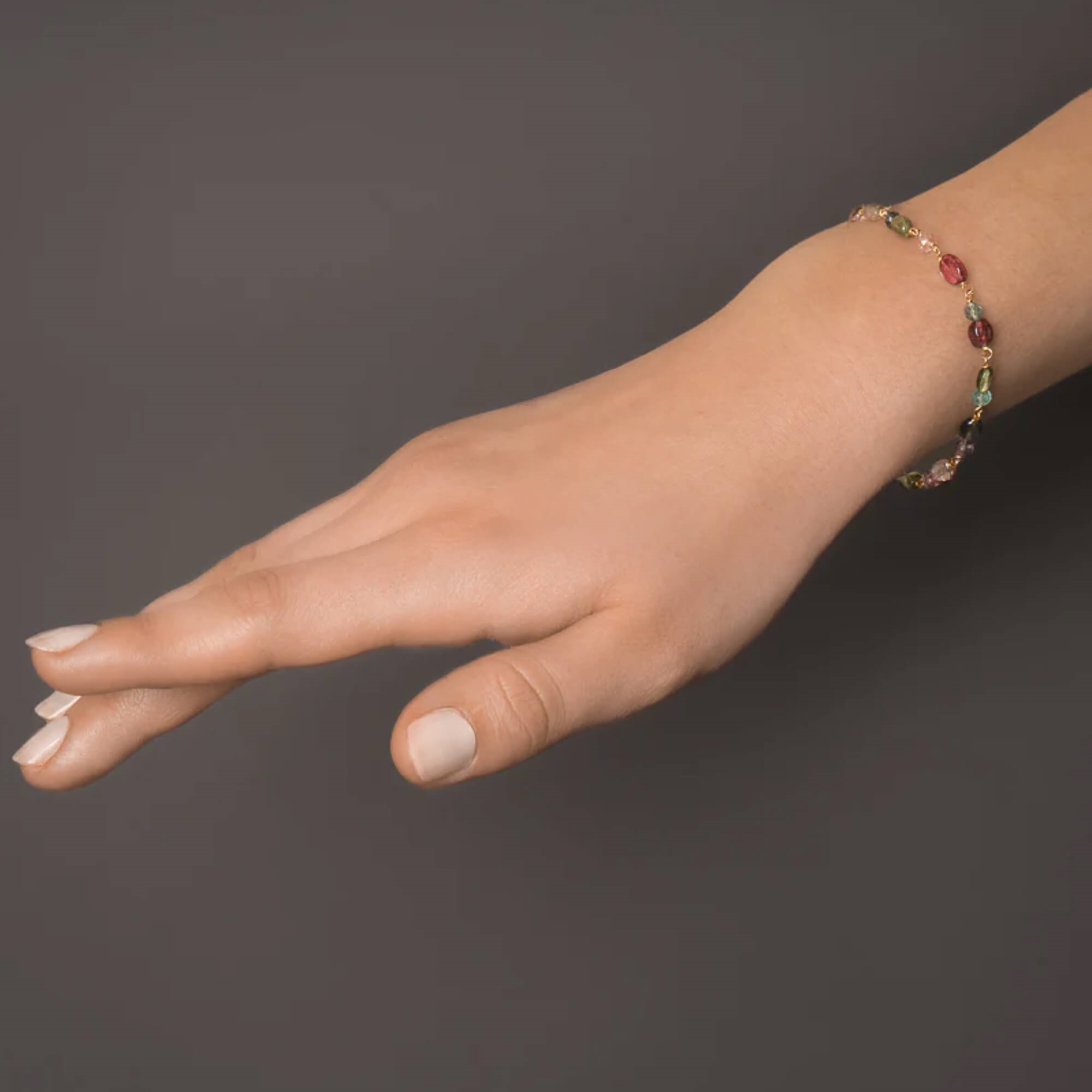 Piccolo Armbånd Twilight er skabt omkring én særlig ædelsten: turmalin. Kendt for sit bemærkelsesværdige farvespektrum er ingen sten ens. Nogle skifter mellem blå og grønne nuancer, mens andre bevæger sig mellem jordtonerne bronze og ravfarve.
