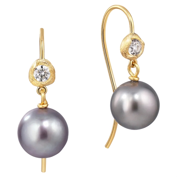 8 kt. guld med 2 Diamant brillanter. I alt 0,26 ct. F/G, vs, Ex. cut. & Thahiti perler