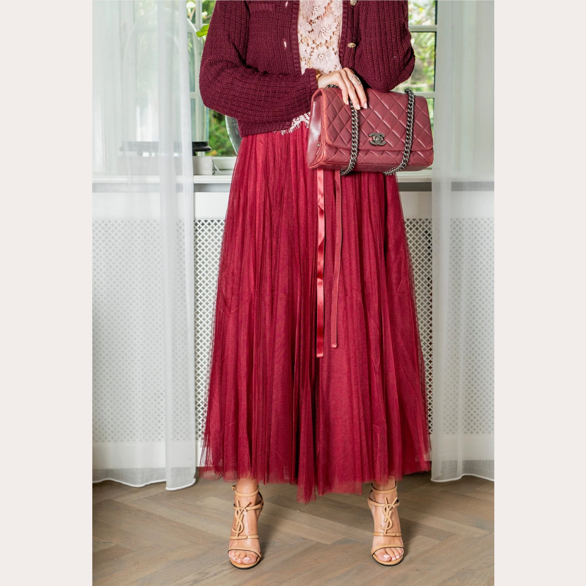 Utrolig smuk tyl nederdel fra EMM Copenhagen i den fineste bordeaux farve med elastisk talje med lille sløjfe. Smuk nederdel som du både kan style til hverdag og fest! En alsidig nederdel som også kan bruges som kjole. Tip: Du kan nemt klippe lidt længde af hvis du synes den er for lang uden at man kan se det.