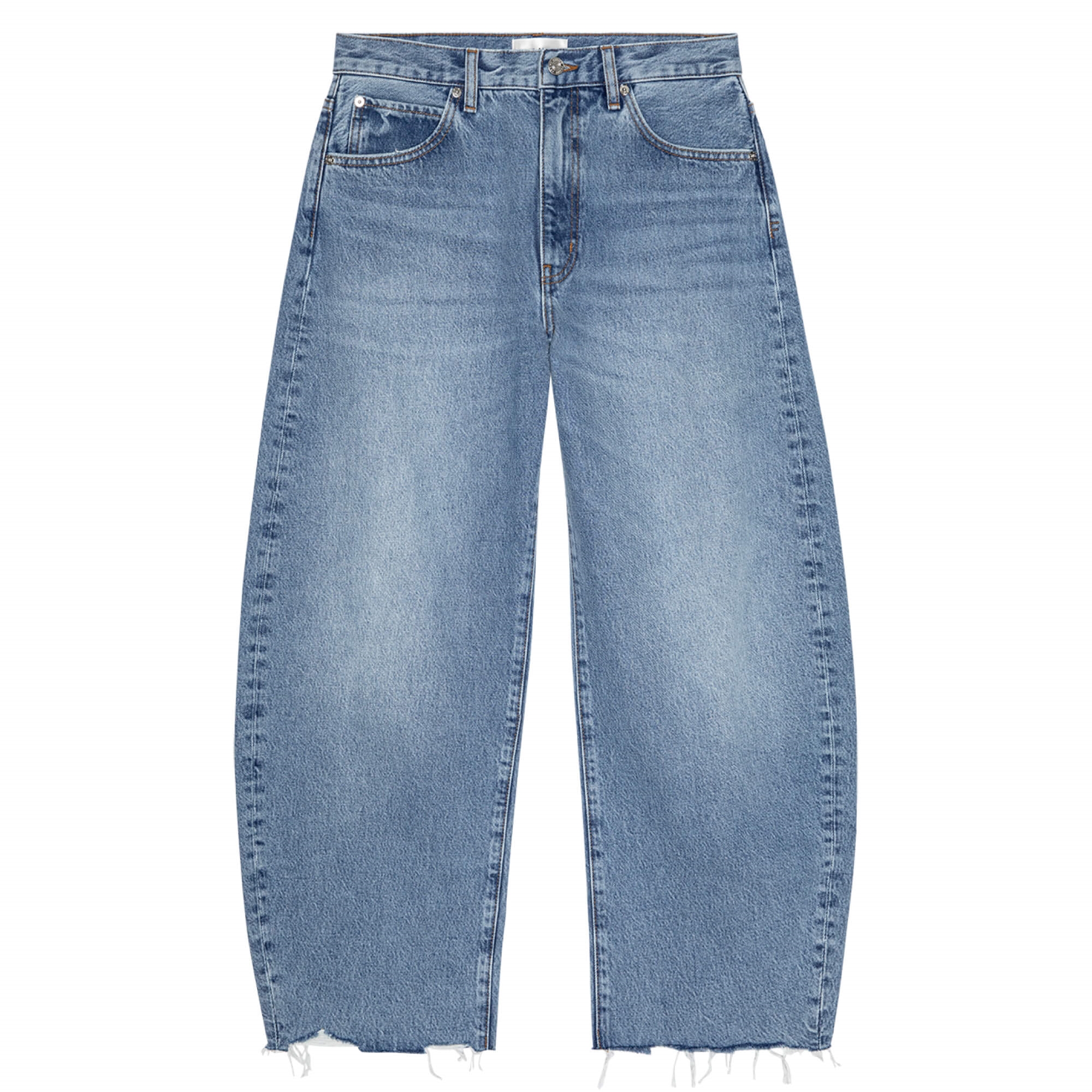 De skønne Bubble Crop Jeans er en utrolig lækker jean fremstillet i 100% Bomuld. Pasformen er barrel-inspireret, hvilket skaber et cool ballonformet udtryk. Modellen er cropped og har splittede frynser forneden. Style den med en t-shirt og loafers for et afslappet hverdagslook, eller en top og stilletter for et mere festligt udtryk.