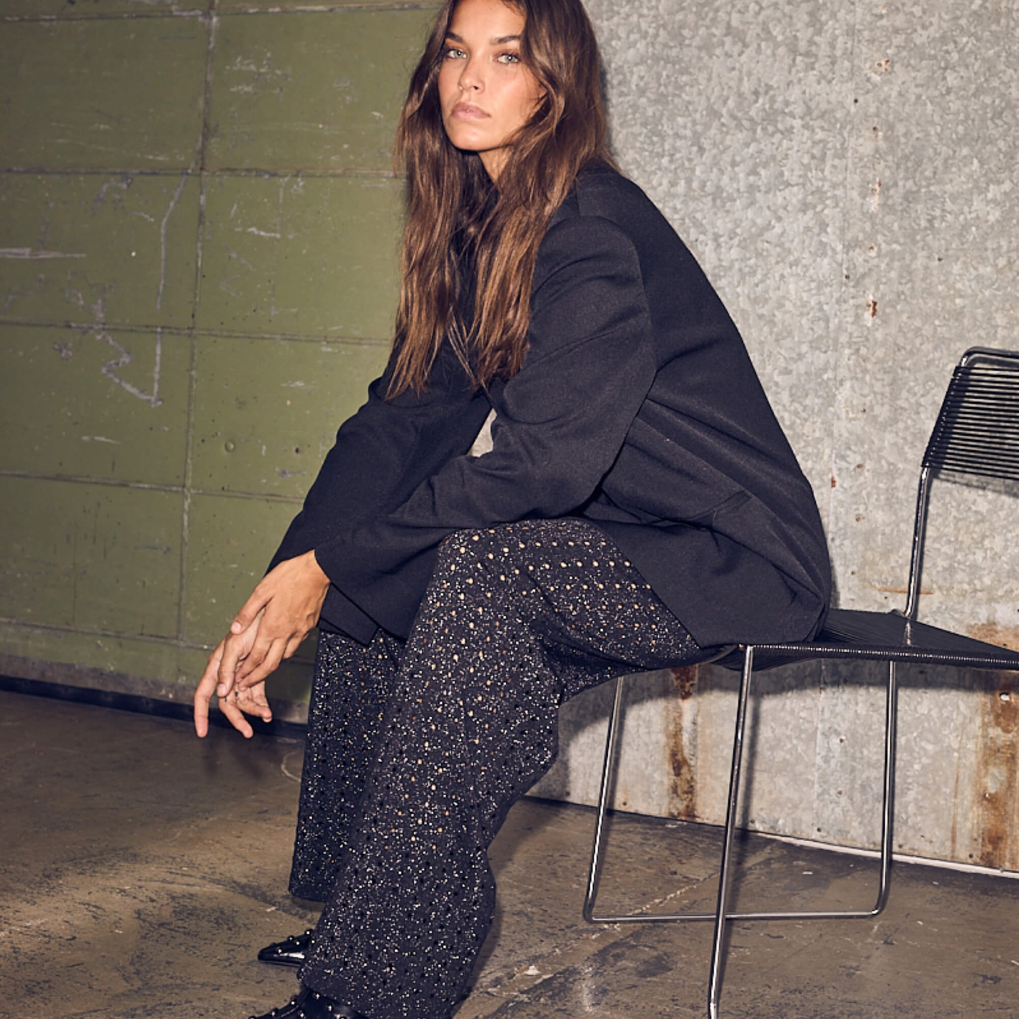 Haute L'amitie Hole Lurex Knit Bukser, Sort