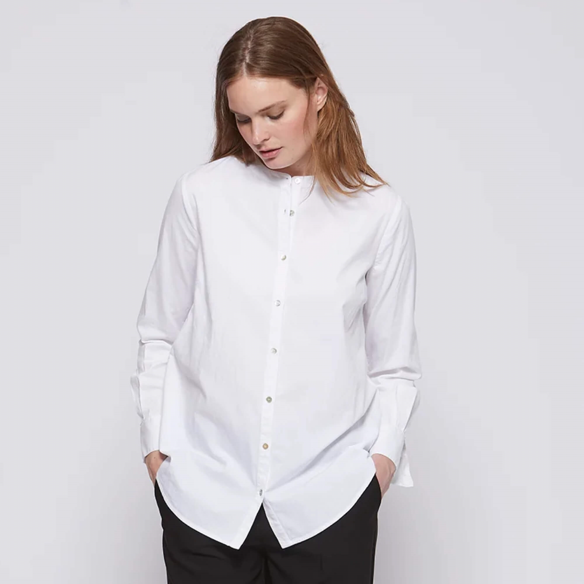 HMMaple skjorten er en elegant og tidløs style fra Heartmade. Den har en klassisk kinakrave, stilren stolpelukning og lange ærmer med fine, skræddersyede detaljer. Skjorten har en alsidig silhuet, der gør den nem at style til både hverdag og fest.