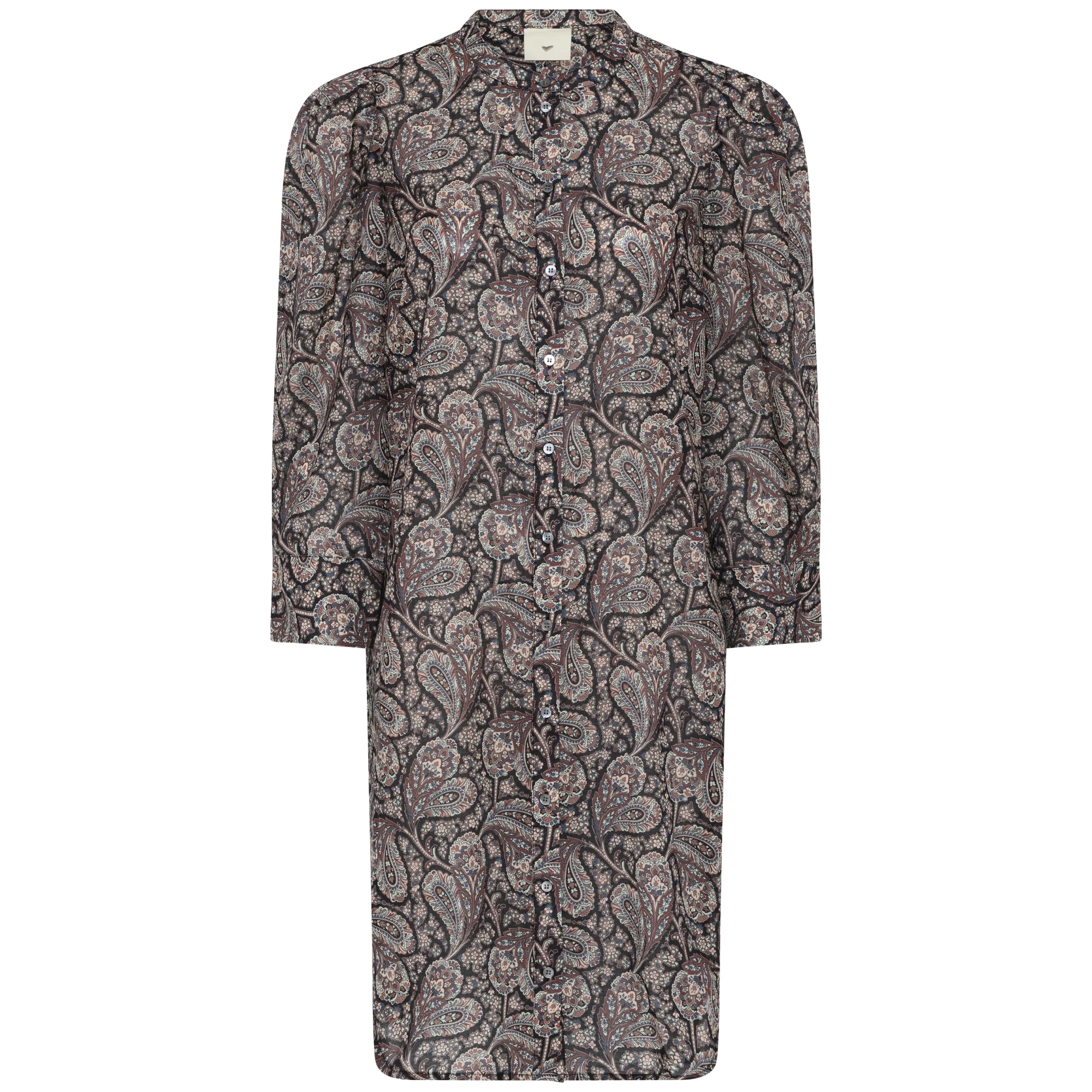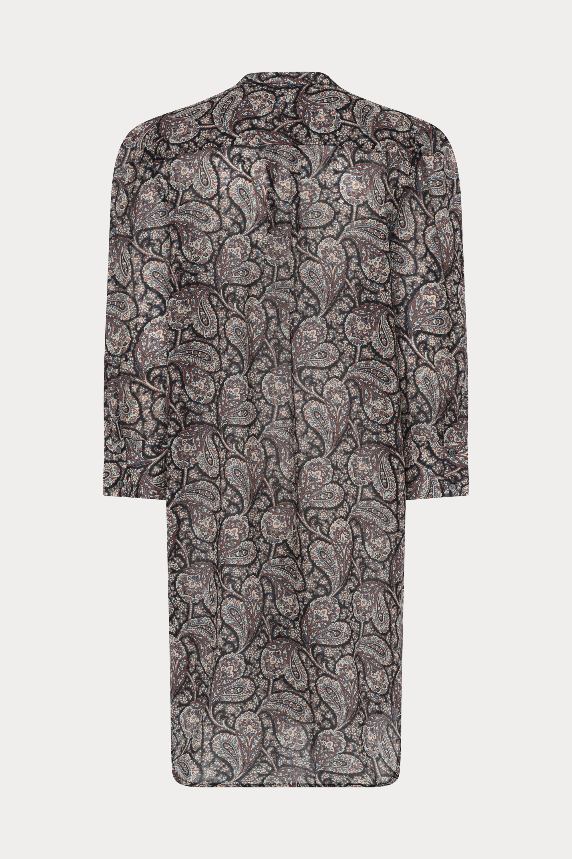HMMeva skjortekjole fra Heartmade er en let og flydende silhuet i sæsonens smukke paisleyprint. Designet har en klassisk knaplukning, afrundet kant og trekvartlange ærmer, som giver et afslappet men raffineret udtryk.