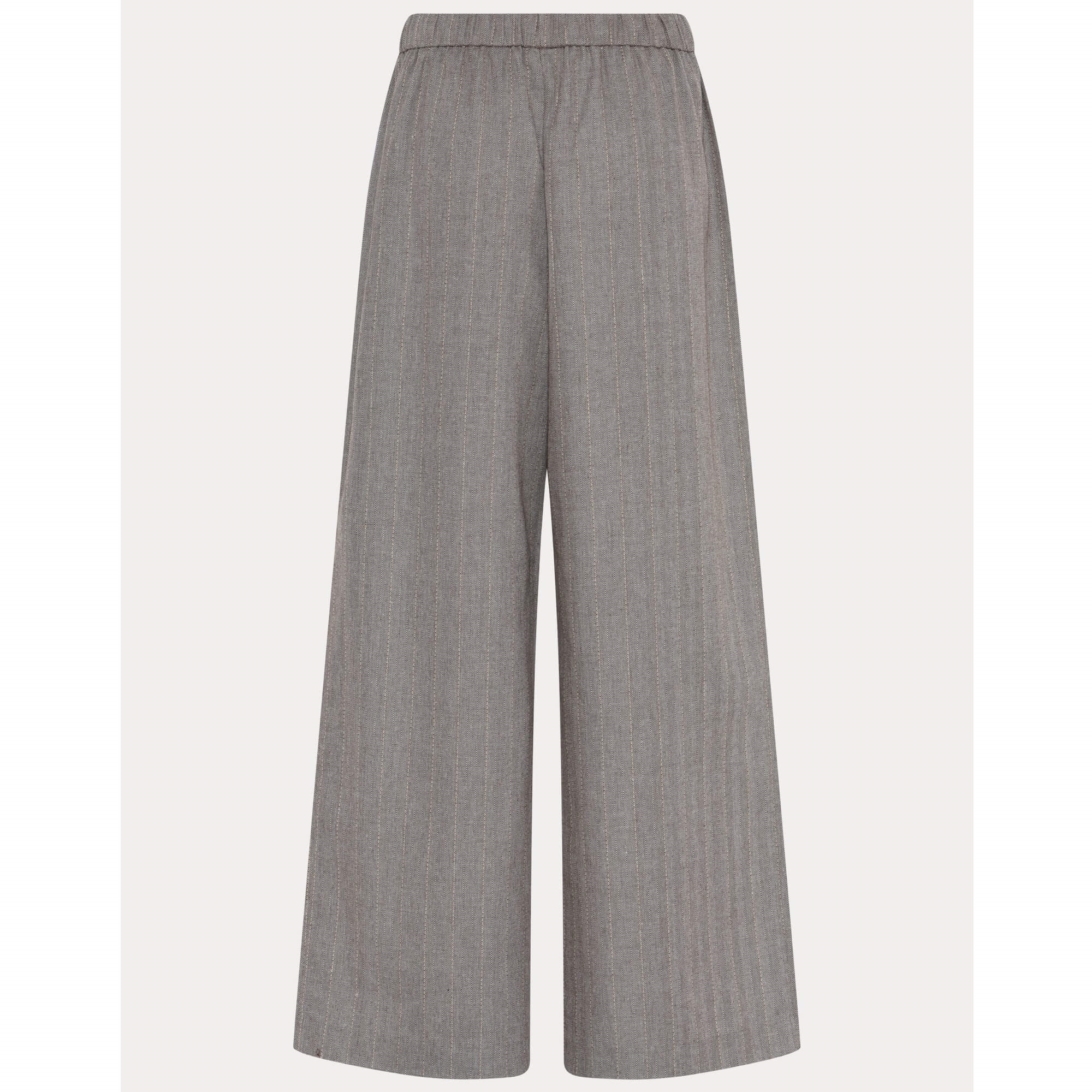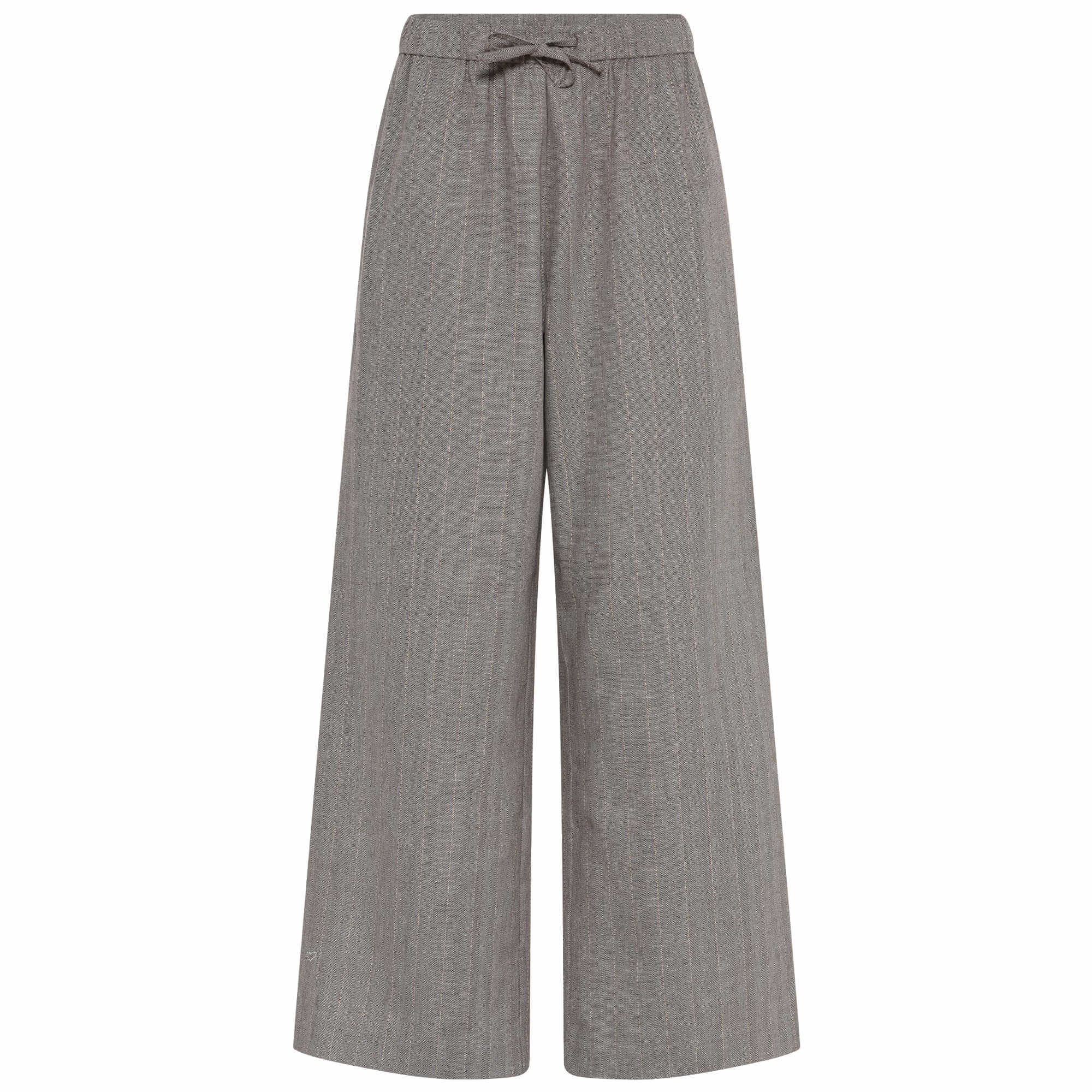 De fine HMNitan er vide, ankellange bukser med en afslappet pasform og et roligt, grafisk udtryk. De har elastisk talje med bindebånd og lige ben, som giver en behagelig og afbalanceret silhuet. Den let strukturerede vævning tilfører diskret karakter og gør dem nemme at style - Både som del af et sæt eller med en enkel skjorte.
