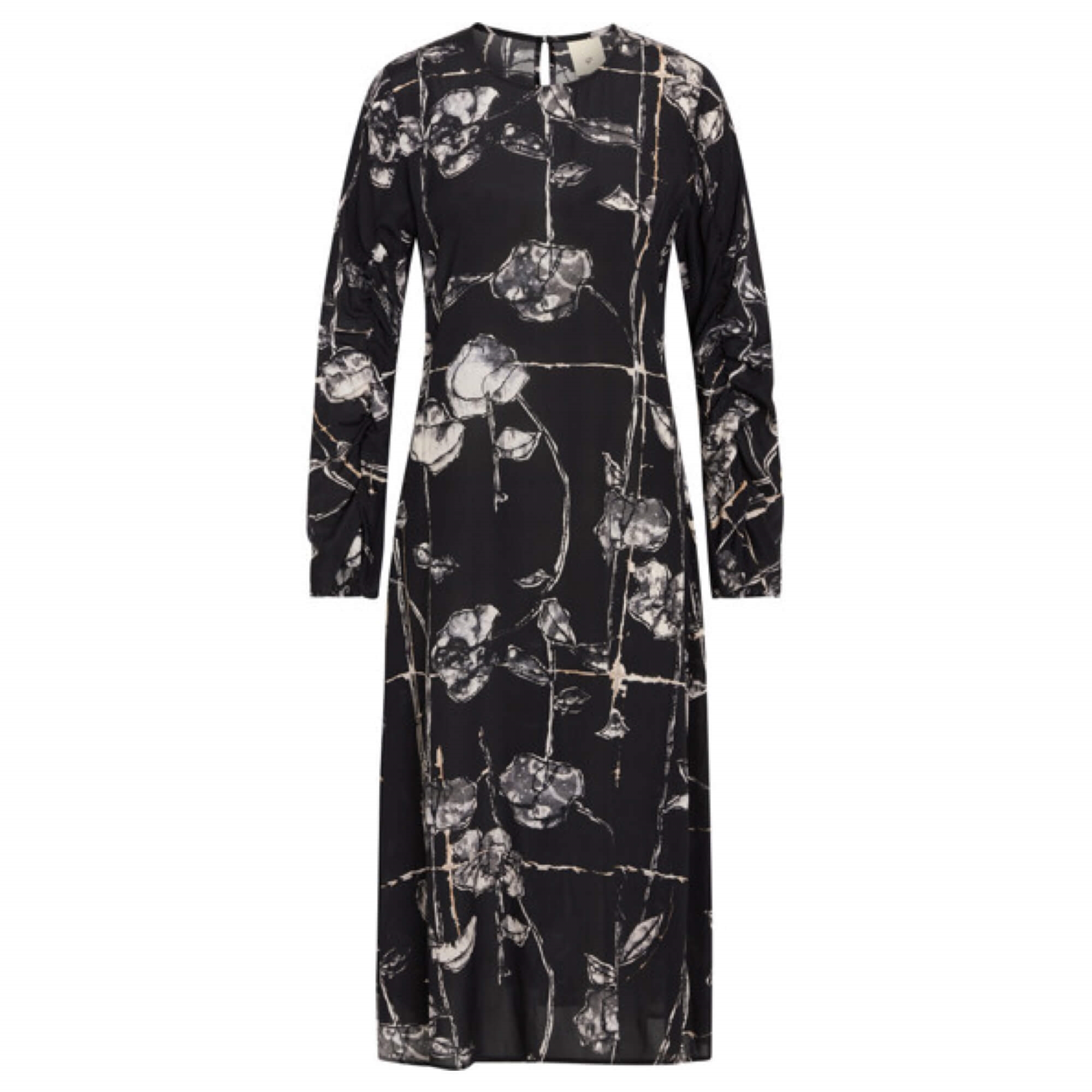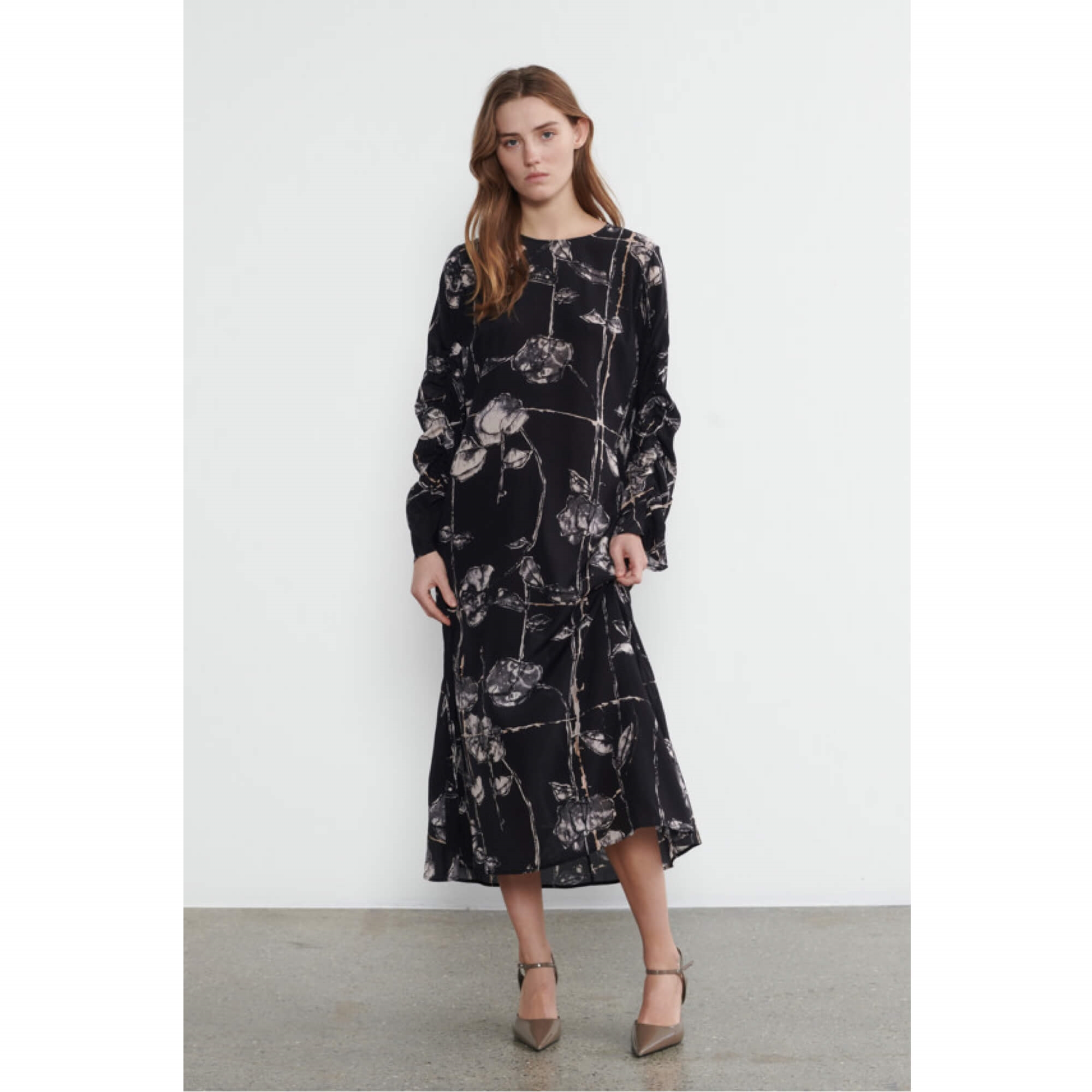 Denne elegante Valina kjole er fremstillet af eksklusiv silke med et smukt print, som giver et sofistikeret og tidløst udtryk.