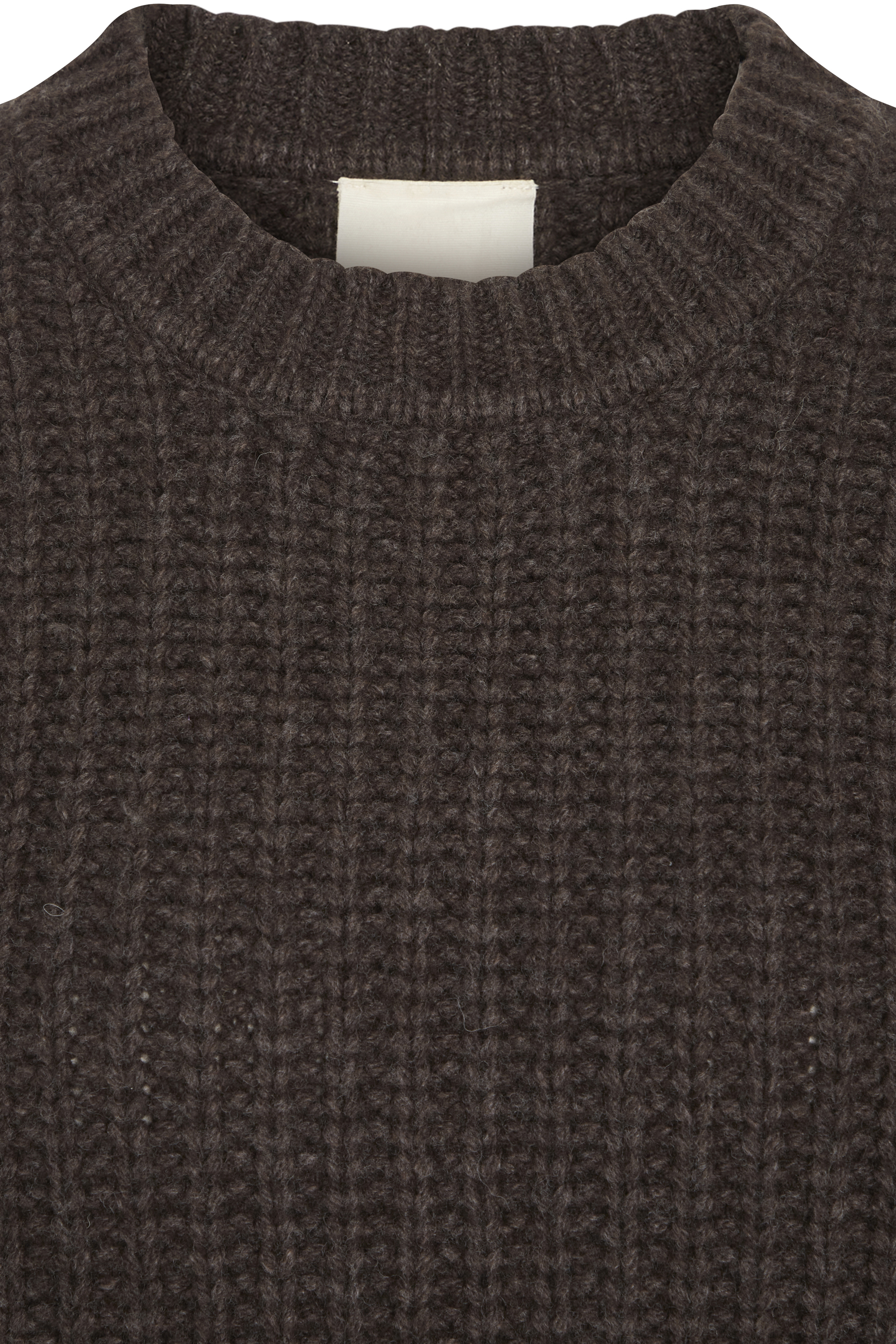Den ribstrikkede struktur tilføjer en diskret tekstur, der giver strikken en flot og elegant silhuet. Den lækre Kuna striktrøje er perfekt til alle anledninger. Farven brun gør den nem at kombinere med andre nuancer, og det tidløse design sikrer, at denne strik bliver en fast favorit i garderoben i mange år fremover.