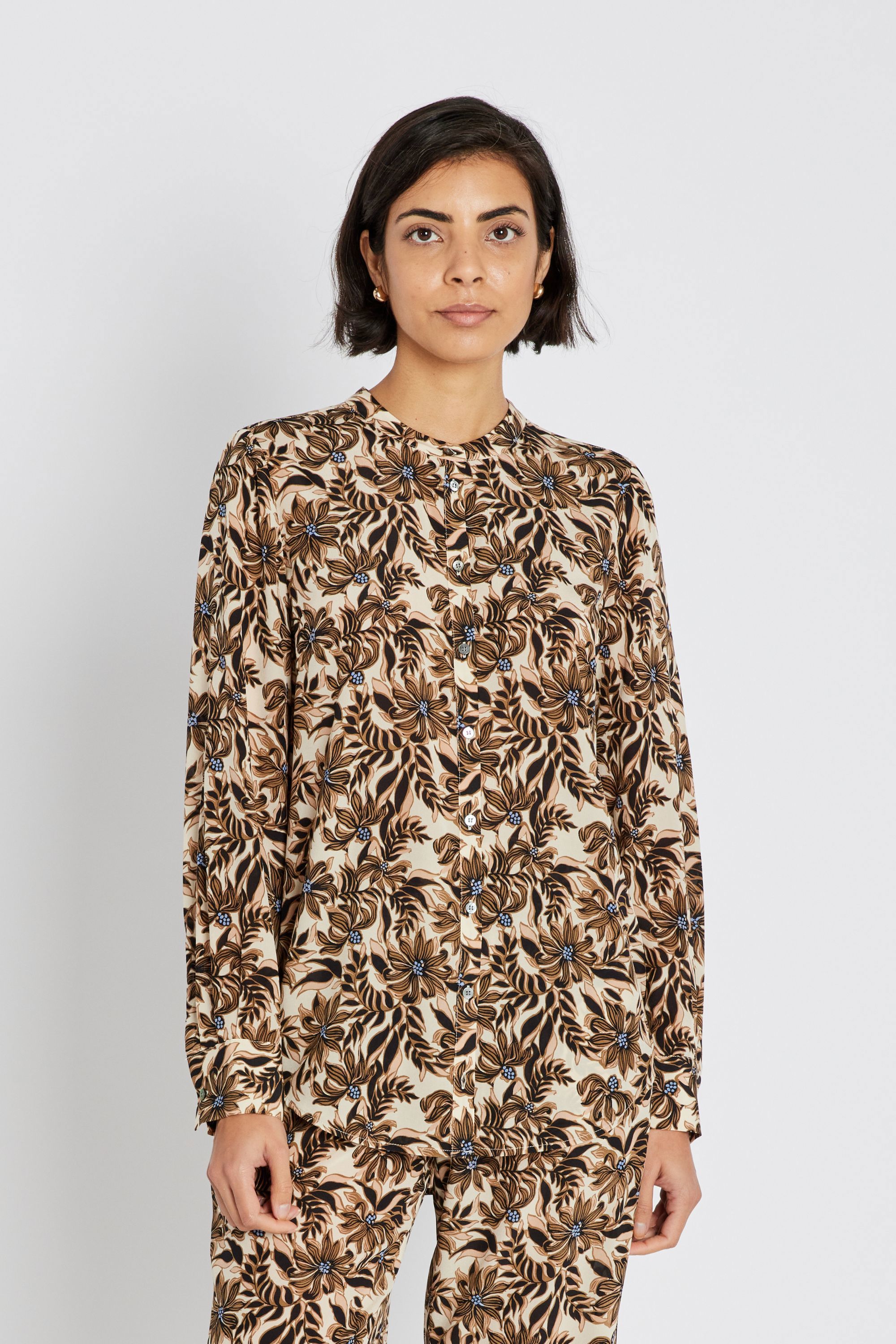 Maple skjorten er en ikonisk Heartmade-style, der forener tidløs elegance med moderne stil. Den er designet med en stilren stolpelukning og en klassisk kinakrave, der tilfører et eksklusivt touch. De lange ærmer og skræddersyede detaljer gør skjorten til et sofistikeret valg til enhver anledning. Match med de smukke Noran bukser i samme print og for et fuldendt look i samme print!