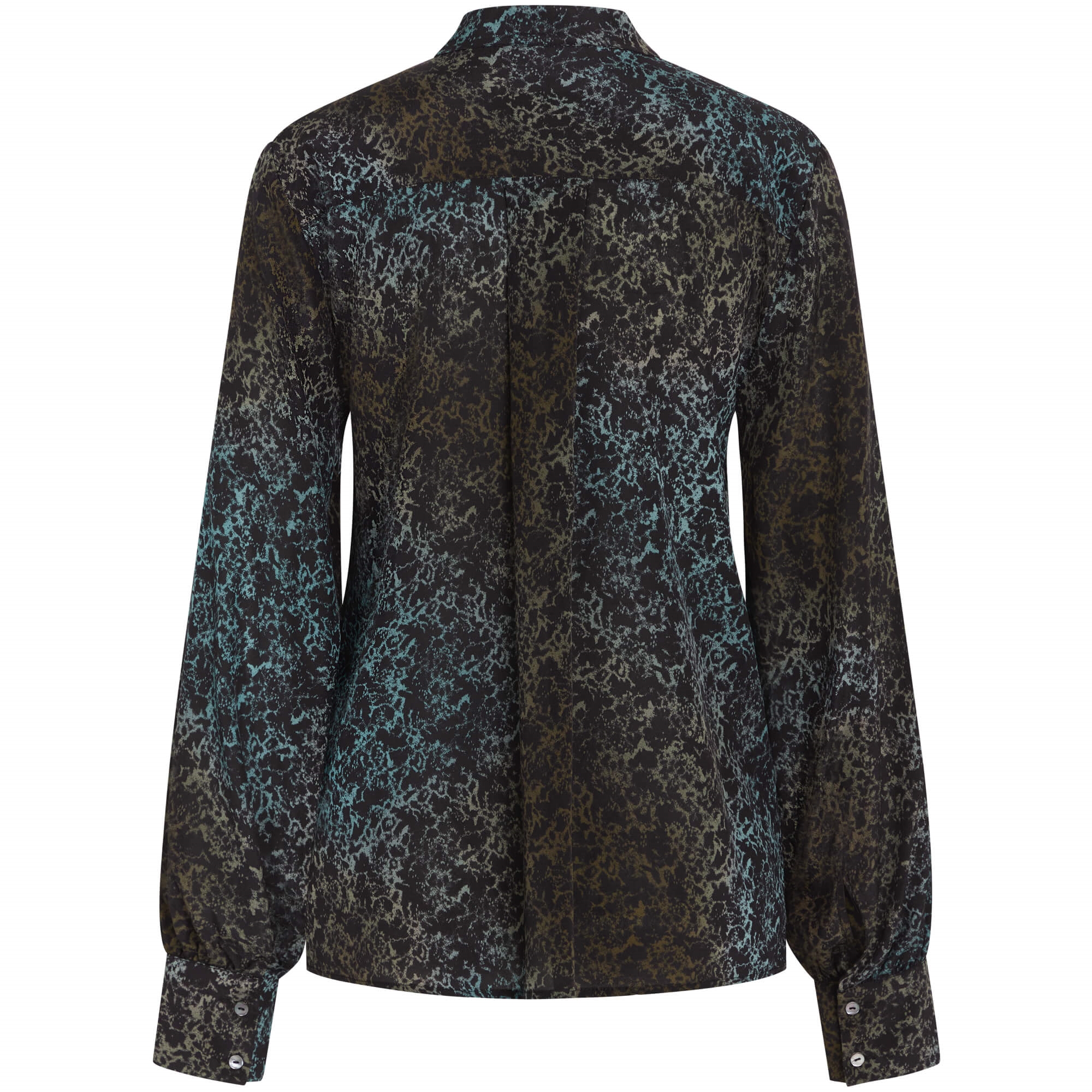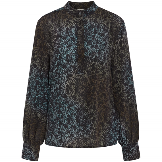 Mesin Shirt fra Heartmade er en utrolig smuk bluse med det fineste abstrakte leopard print i brune og blå toner. Heartmade blusen er designet med løs pasform og rynk på begge skuldre samt færdiggjort med feminine ballonærmer og smal kinakrave. Smuk Heartmade bluse i deres lækre silke stretch kvalitet!