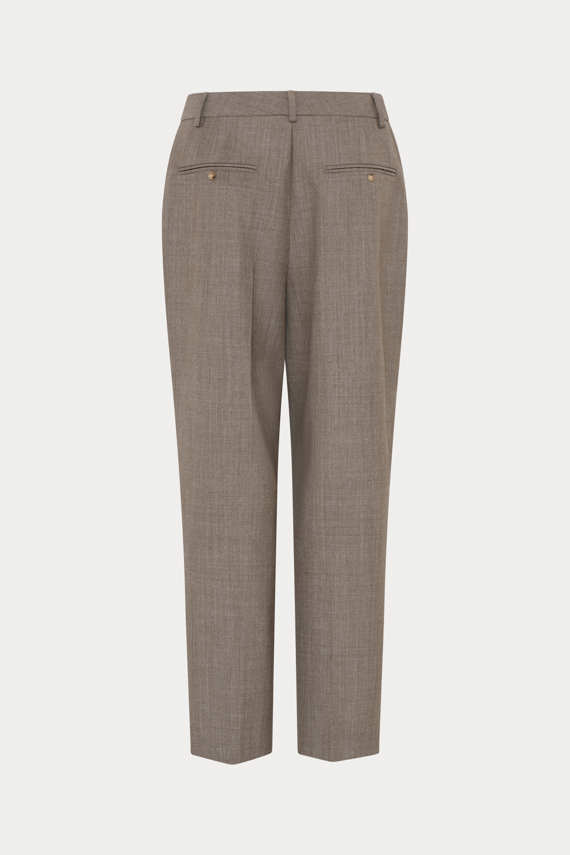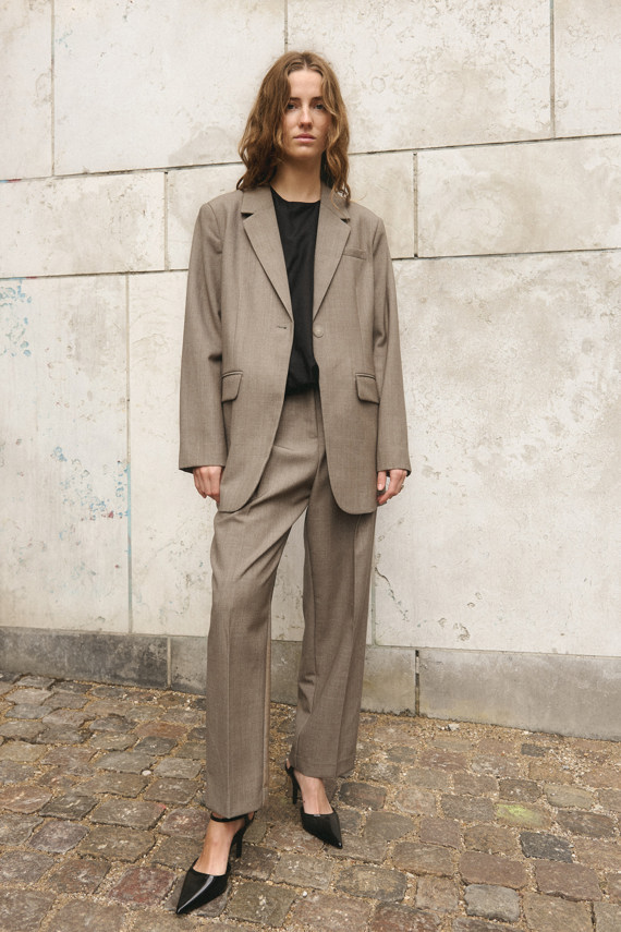 Disse Nesra bukser er elegante og tidløse med en sofistikeret pasform. De er designet i en smuk sand-melange farve, der gør dem alsidige og lette at style til både hverdag og mere formelle anledninger. Med deres klassiske skræddersyede snit, pressefolder og behagelige materiale tilbyder de både komfort og stil. Perfekte til et stilrent look, enten med en skjorte og blazer eller en afslappet strik.
