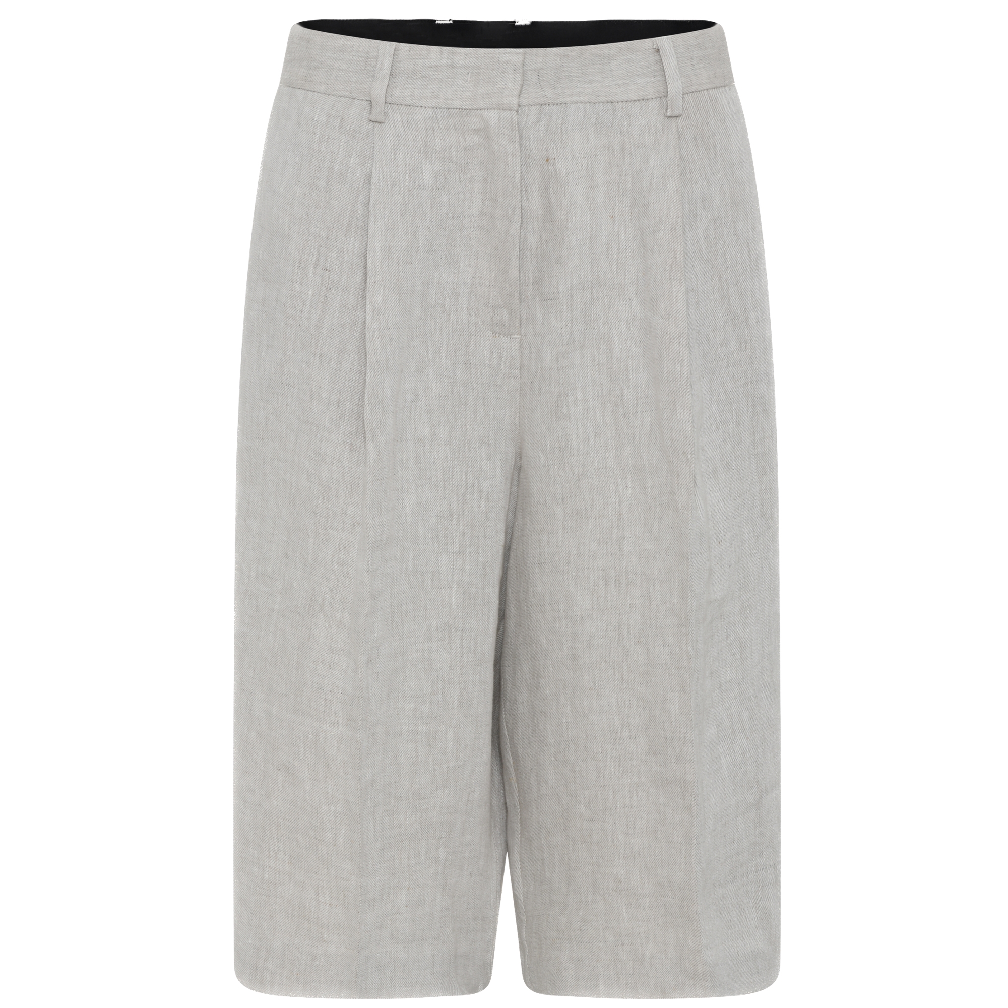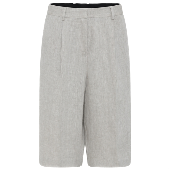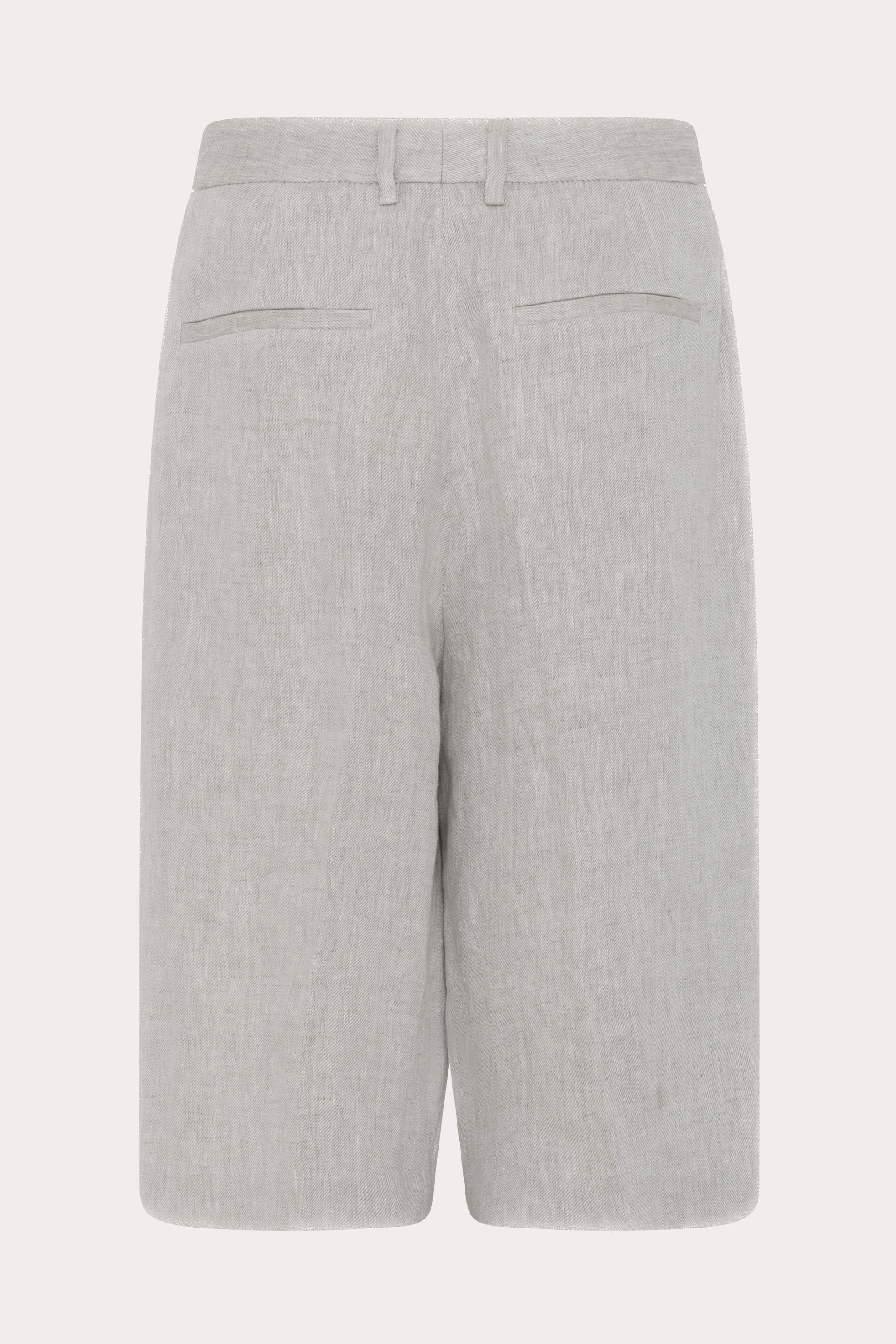 Nurina shortsene forener sofistikeret skrædderkunst med afslappet elegance. Den løse pasform og knælange silhuet skaber et tidløst udtryk, mens pressefolderne tilfører et raffineret touch. De skrå sidelommer og paspolerede baglommer understreger den klassiske inspiration fra herretailoring.