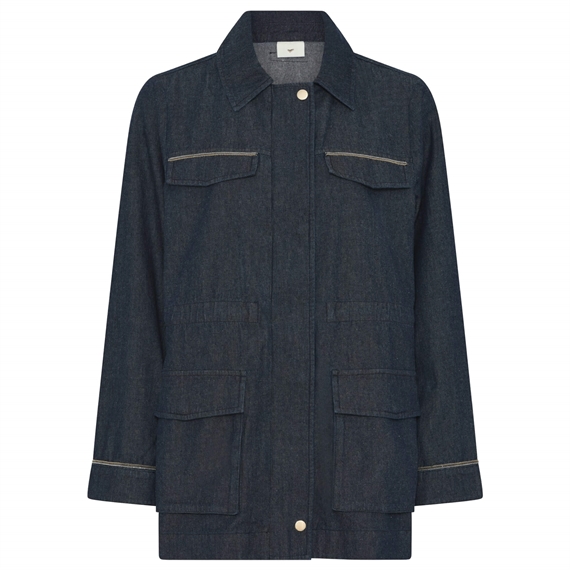 HMRetal denimjakke er en let oversized jakke i rå denim med markerede boxlommer, skjult knaplukning og snøre i taljen. Et struktureret lag til sæsonovergange.