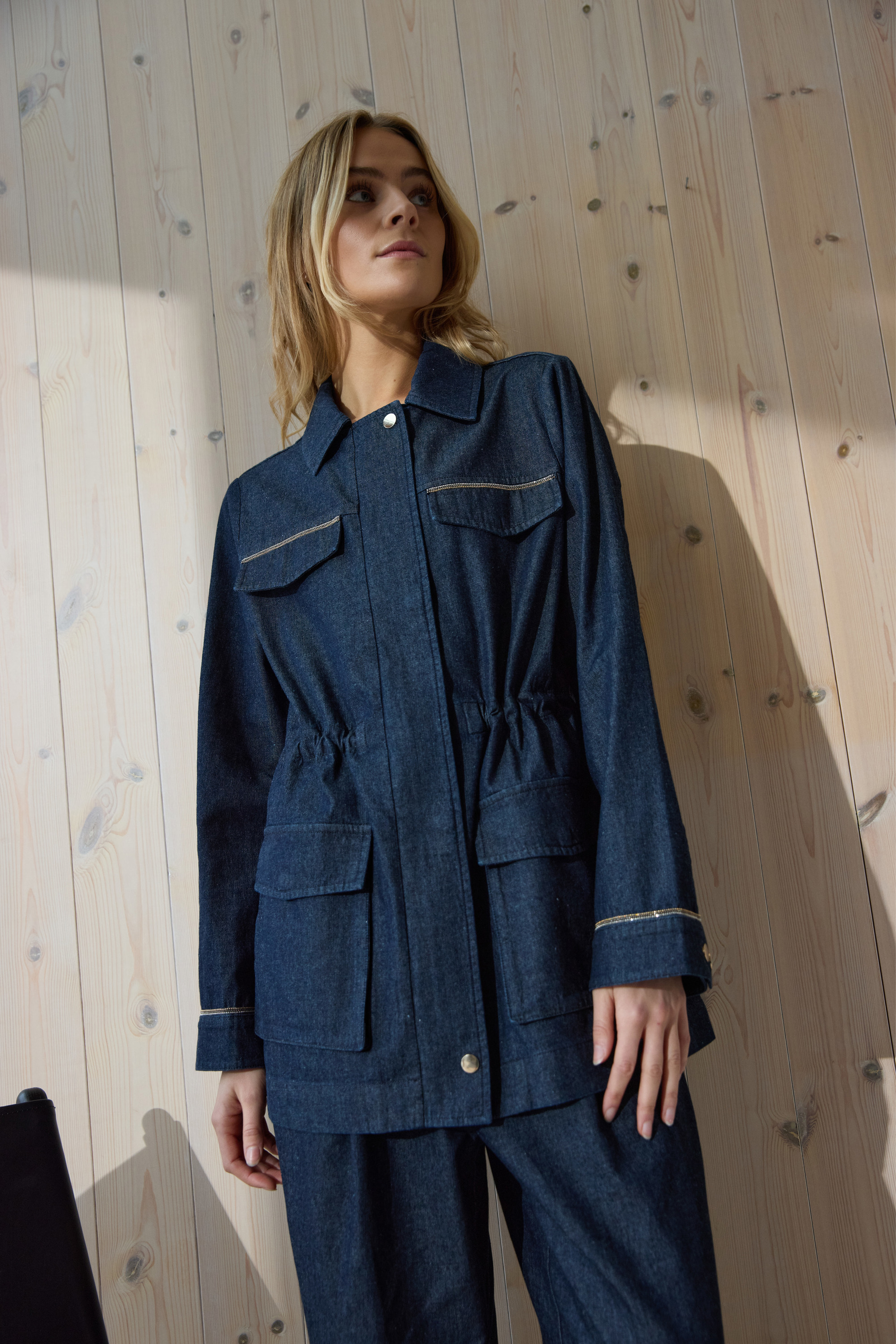 Style med den matchende denimnederdel for et helstøbt look, eller brug over en løs silkeskjorte og smalle bukser for et mere legende udtryk.