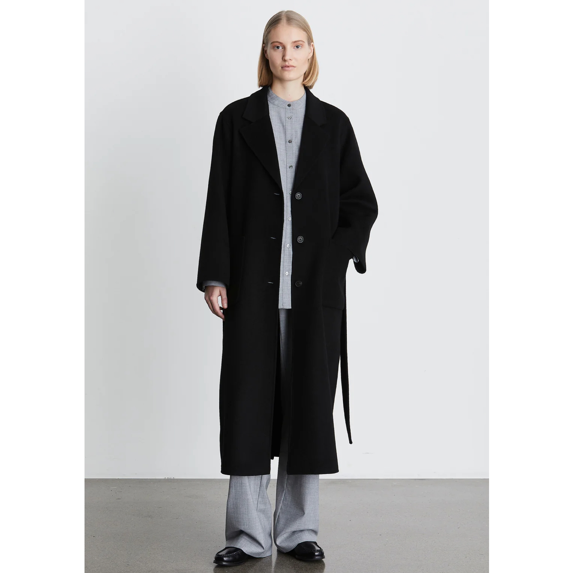 Rosal frakken fra Heartmade er en flot lang frakke med et bælte i taljen og en knaplukning foran. Den store dobbelte reverskrave og de store patch lommer tilføjer et moderne touch, mens sømmene i ærmerne og bunden giver en flot finish.